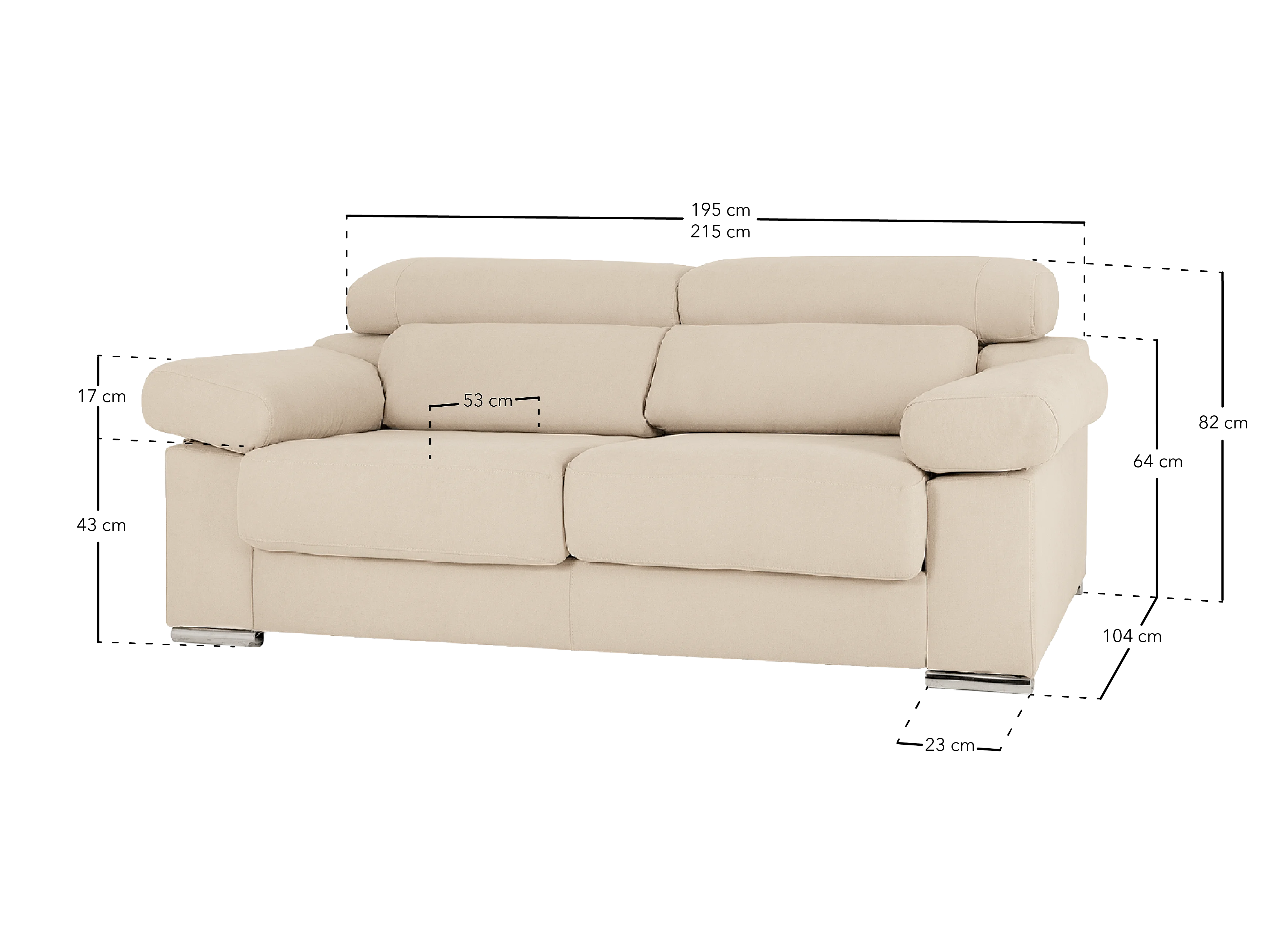 Sofá de 3/4 plazas color beige de 215x104cm - SANDRA - DECOWOOD