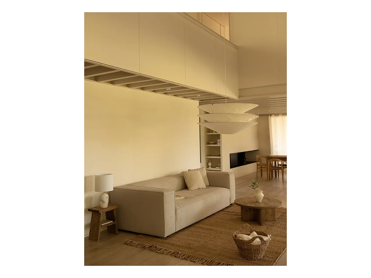 Sofá de 3/4 plazas de pana color beige 210x70x110cm - LOLA - DECOWOOD
