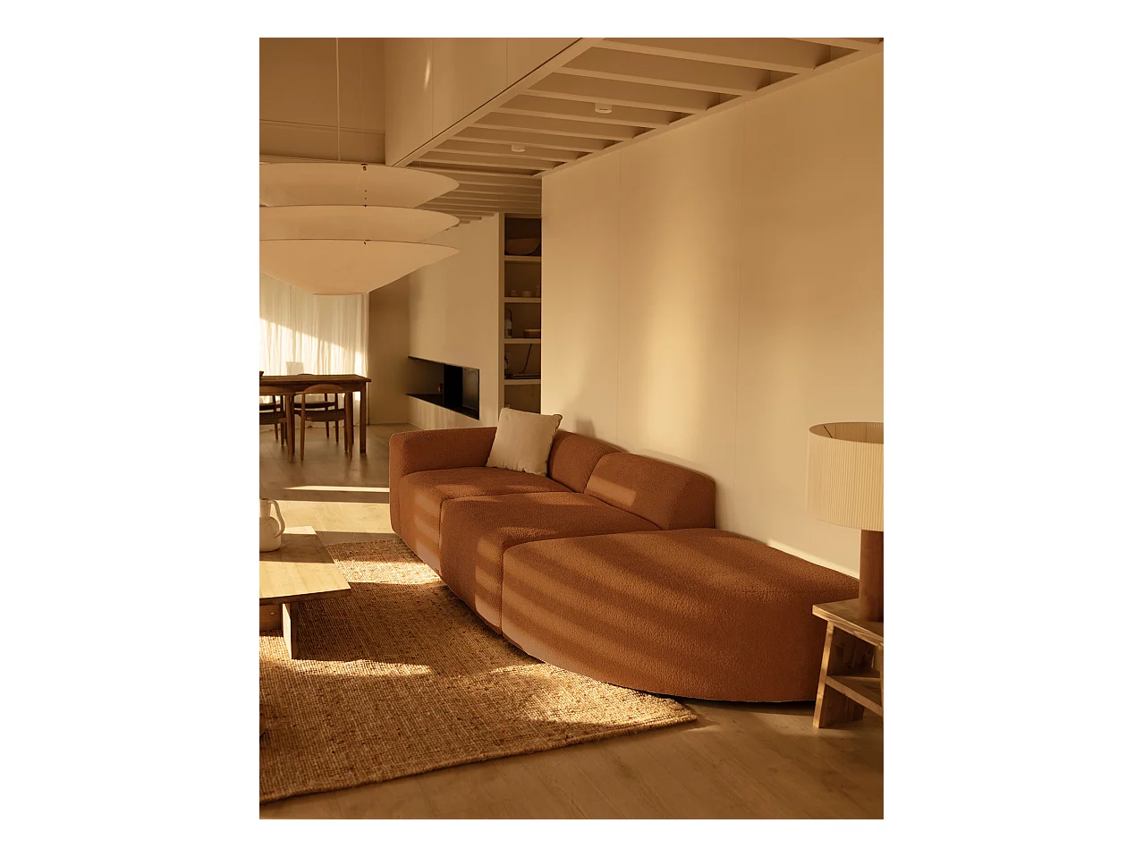 Sofá de 3 módulos con curva derecha de bouclé color cobre 320x70x110cm - BERTA - DECOWOOD