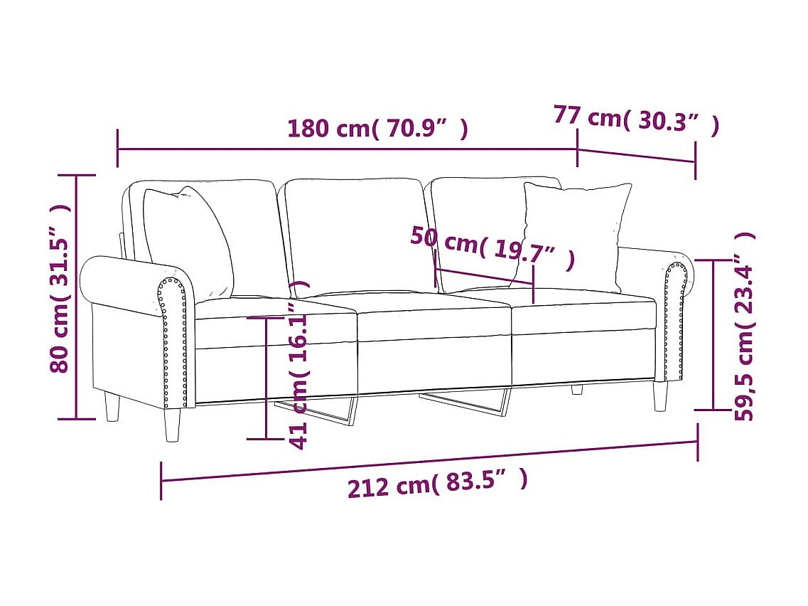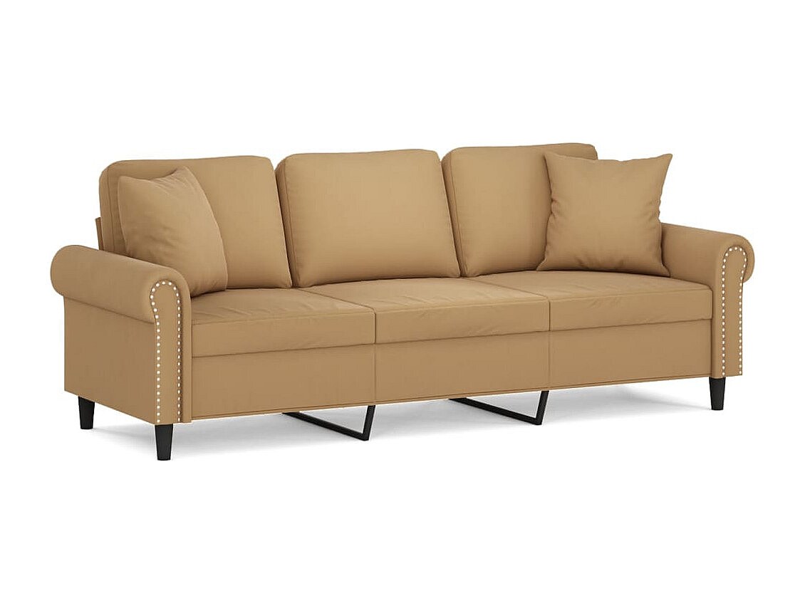 Sofá de 3 plazas con cojines decorativos de terciopelo marrón de 180 cm.