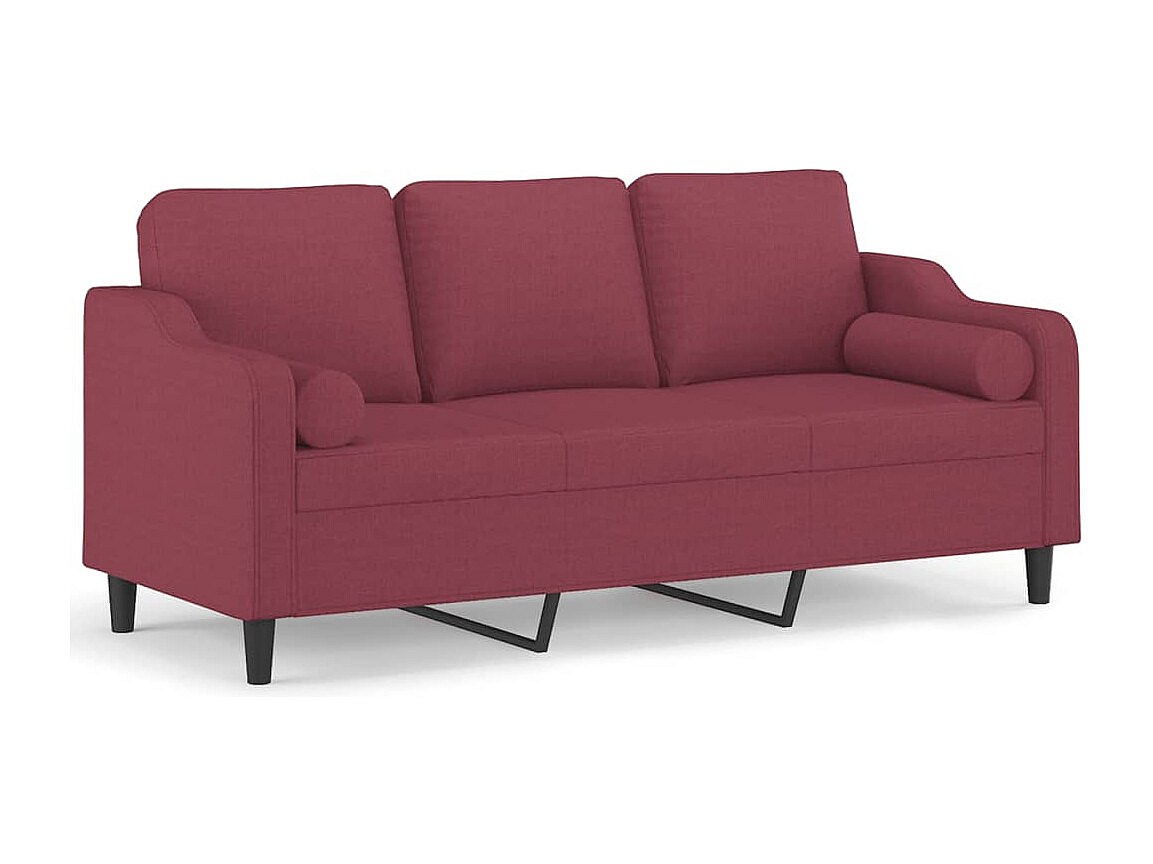 Sofá de 3 plazas con cojines decorativos tela burdeos 180 cm
