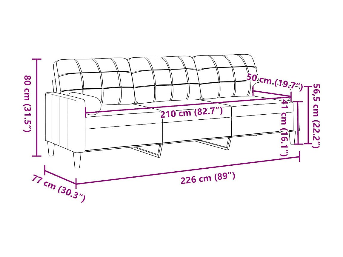 Sofá de 3 plazas con cojines decorativos tela burdeos 210 cm
