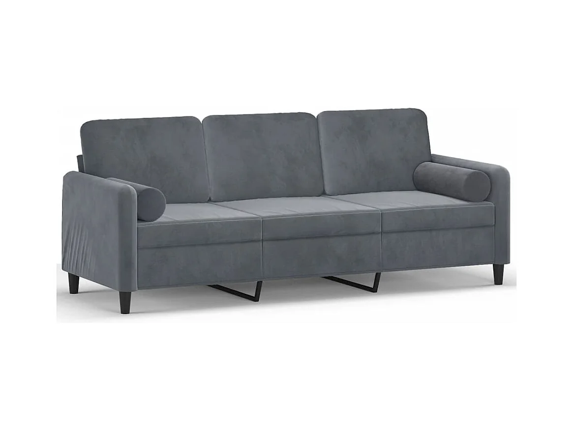 Sofá de 3 plazas con cojines gris oscuro de terciopelo de 180 cm