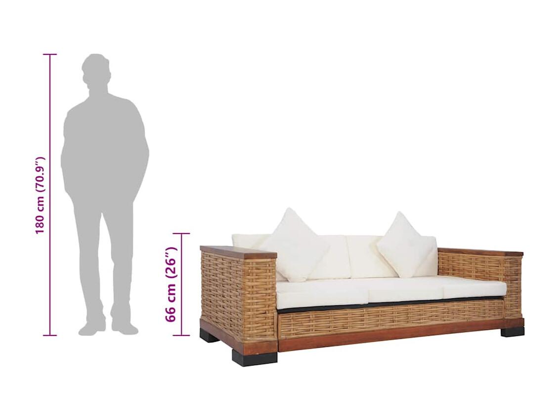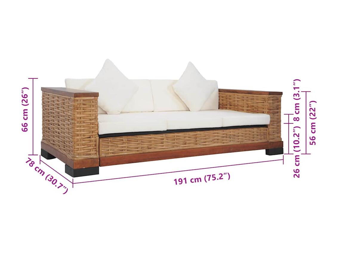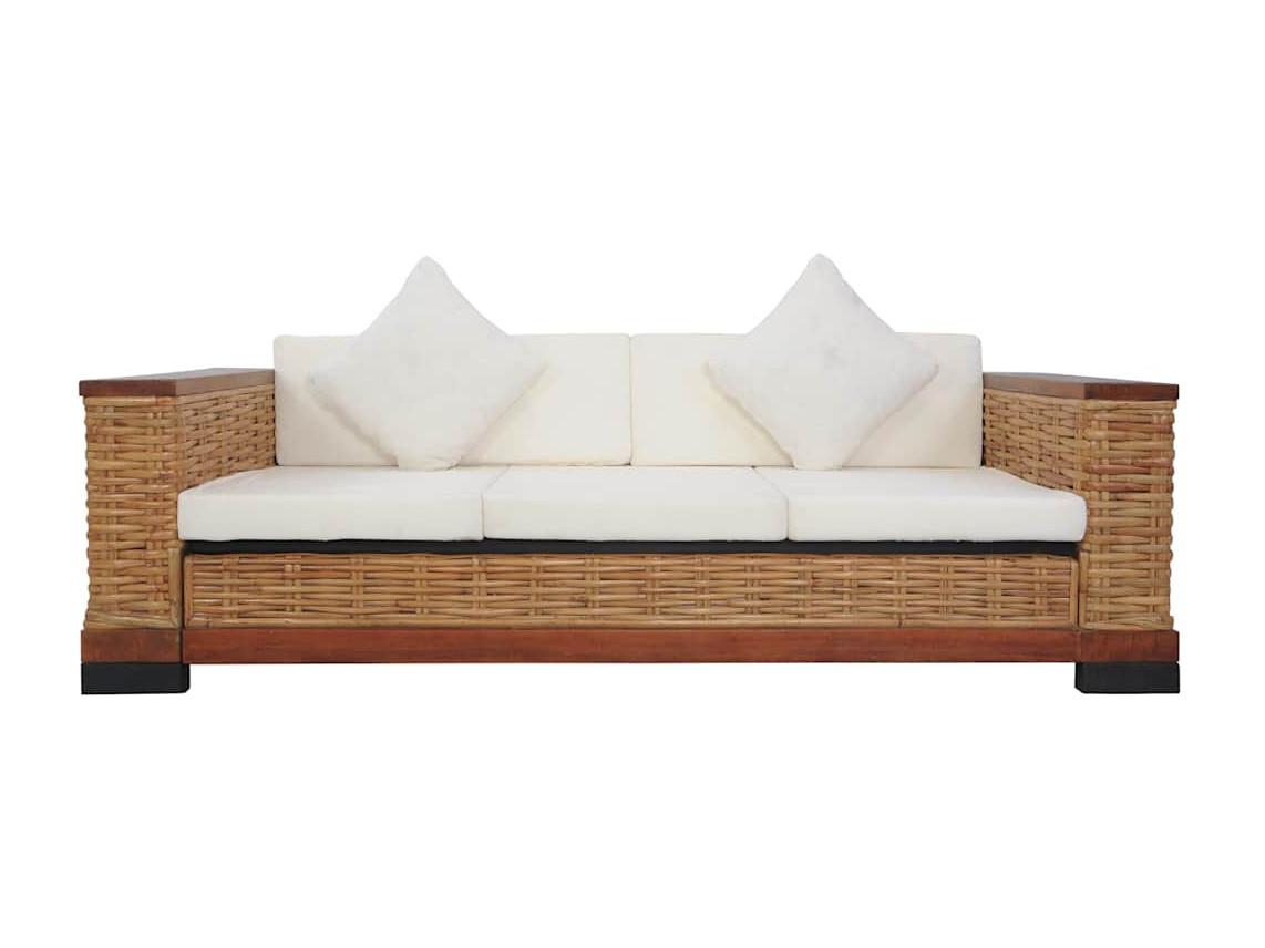 Juego de sofás con cojines 3 piezas ratán natural marrón