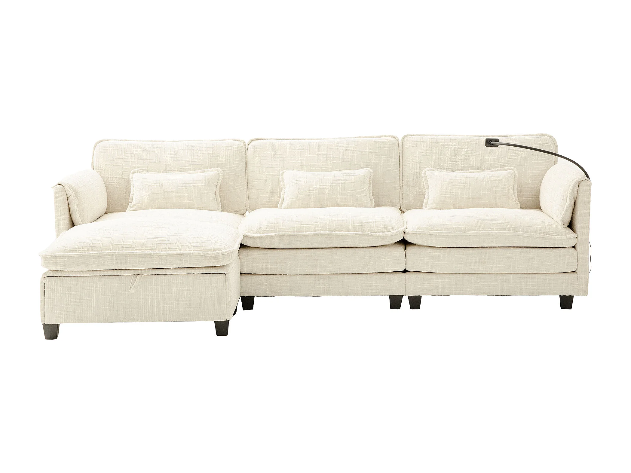 Sofá de 3 plazas con otomana - Sofá esquinero con soporte para teléfono y bolsillos laterales - chenilla beige