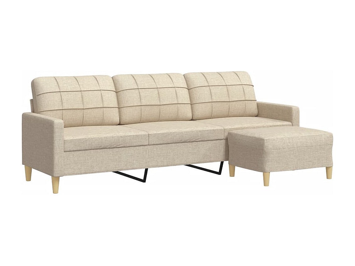 Sofá de 3 plazas con reposapiés de tela color crema de 180 cm