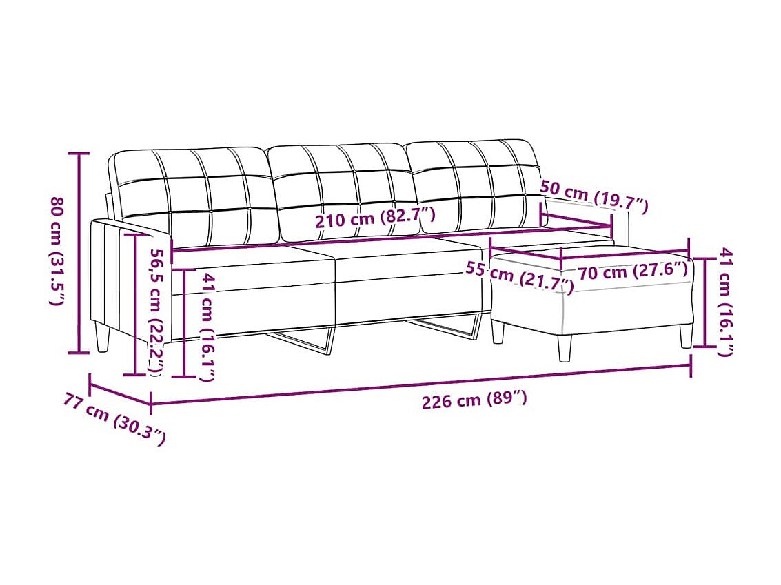 Sofá de 3 plazas con reposapiés de tela color crema de 210 cm
