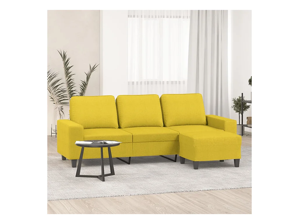 Sofá de 3 plazas con taburete de tela amarillo claro 180 cm ES73980