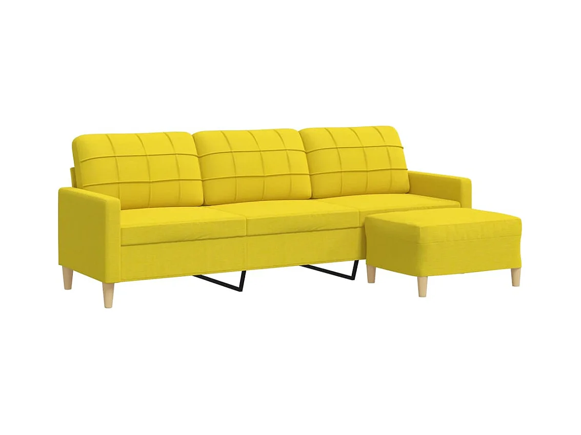 Sofá de 3 plazas con taburete de tela amarillo claro 210 cm