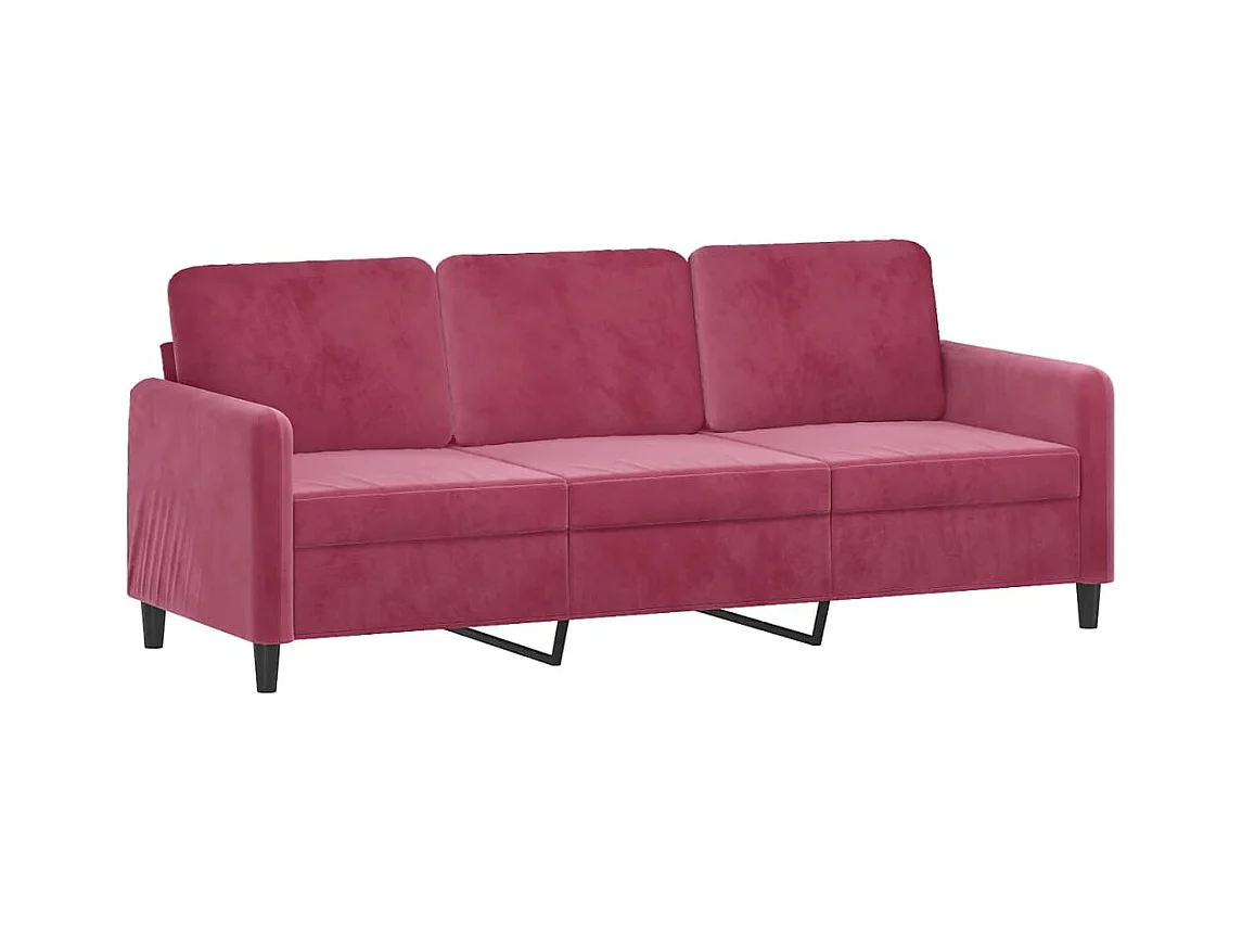 Sofá de 3 plazas con taburete de terciopelo rojo tinto 180 cm