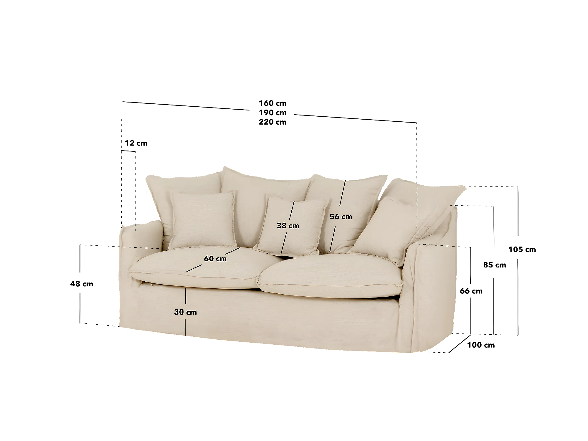 Sofá de 3 plazas de algodón y lino desenfundable color blanco 190x95x100cm - MIA - DECOWOOD