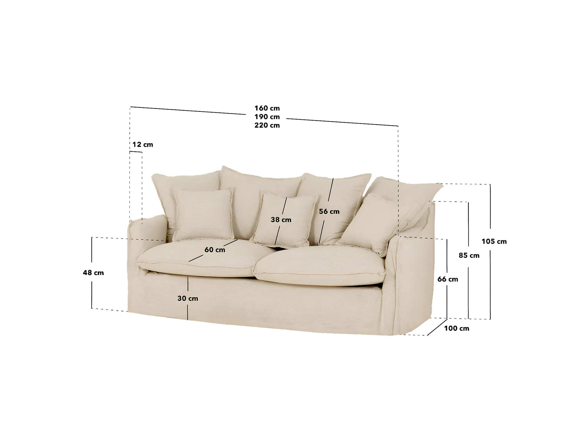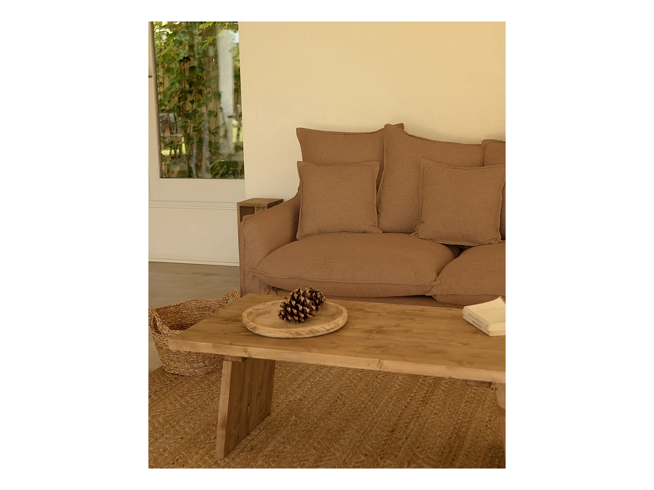 Sofá de 3 plazas de algodón y lino desenfundable color teja 190x95x100cm - MIA - DECOWOOD