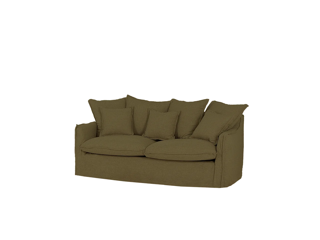 Sofá de 3 plazas de algodón y lino desenfundable color verde 190x95x100cm - MIA - DECOWOOD