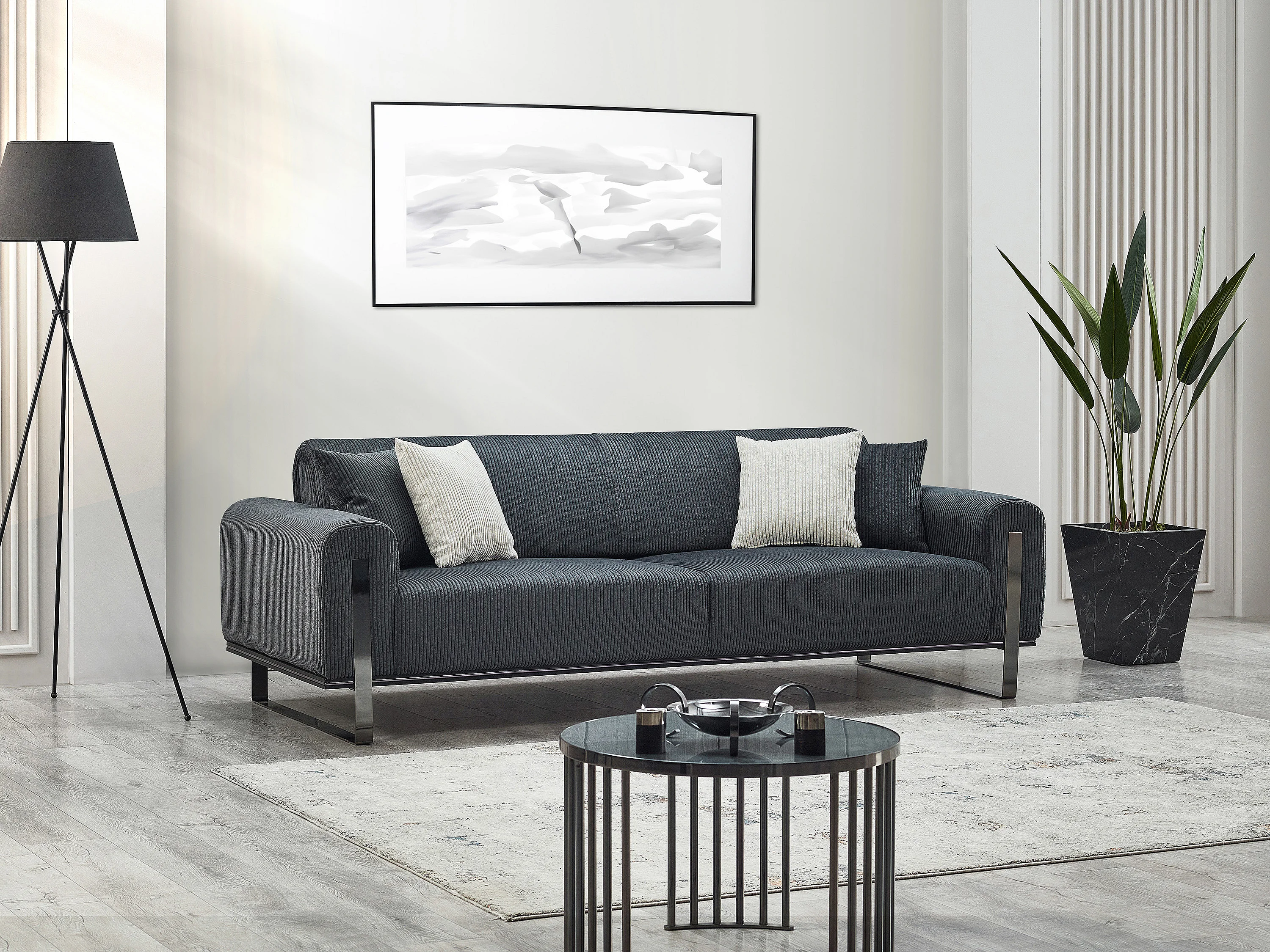 Sofá de 3 plazas de pana gris oscuro ADRANI