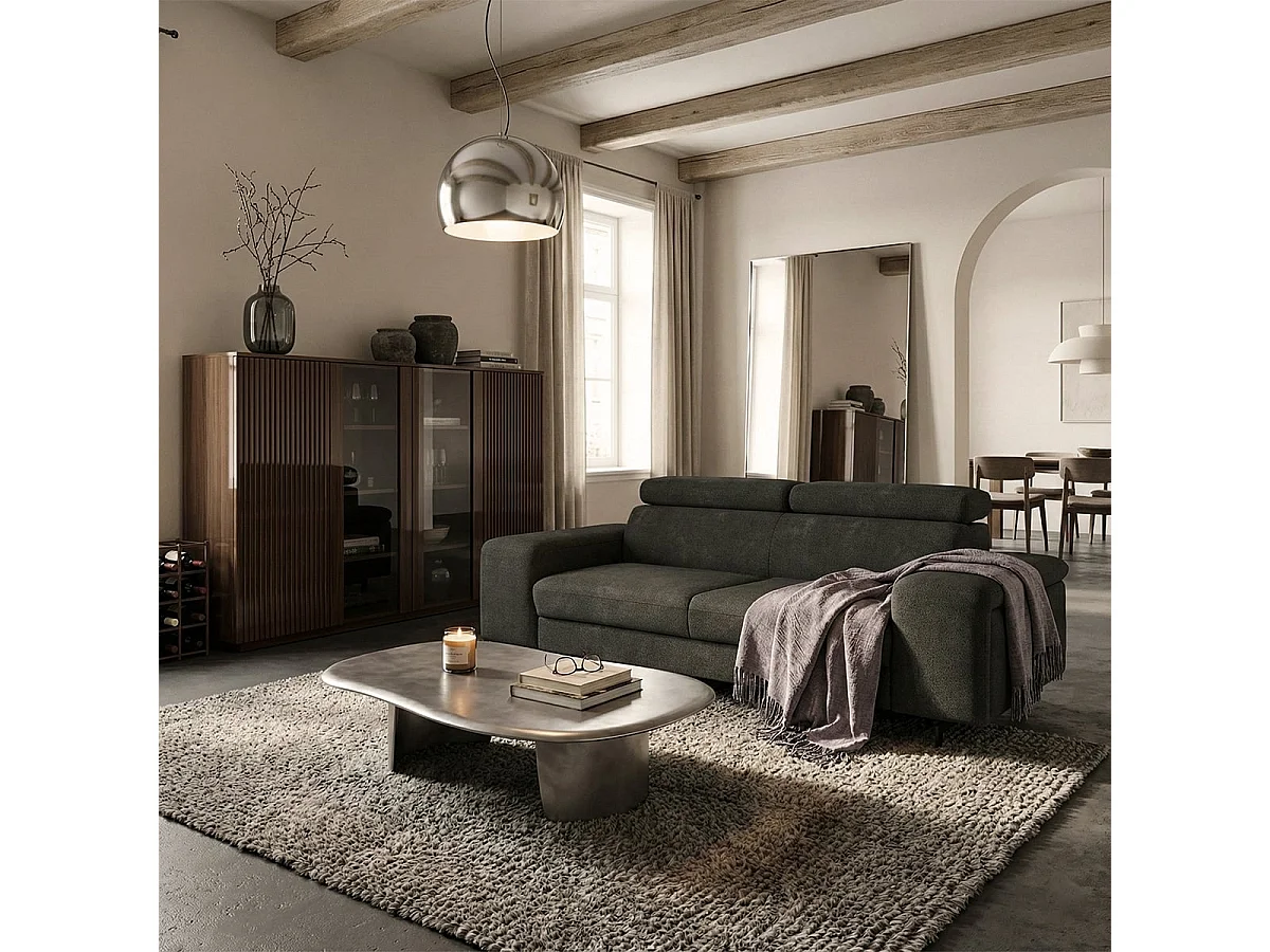 Sofá de 3 plazas diseño moderno con reposacabezas ajustable Rouna - Gris Oscuro