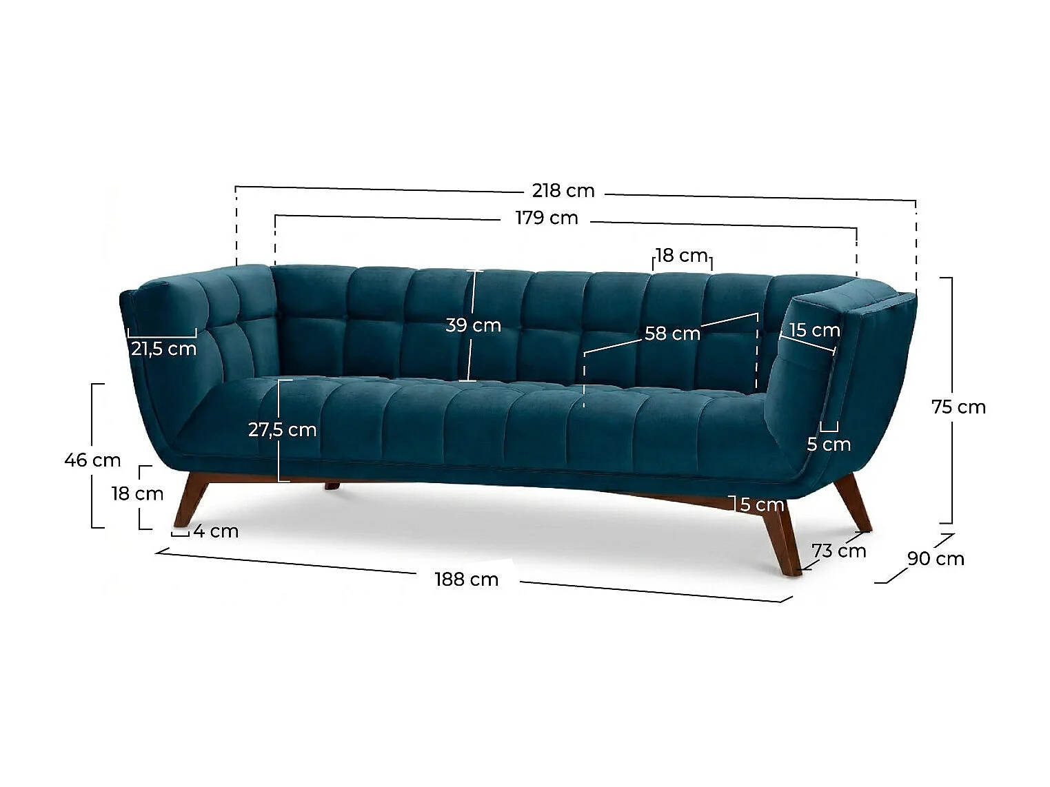 Sofá de 3 plazas en terciopelo azul oscuro - Mona