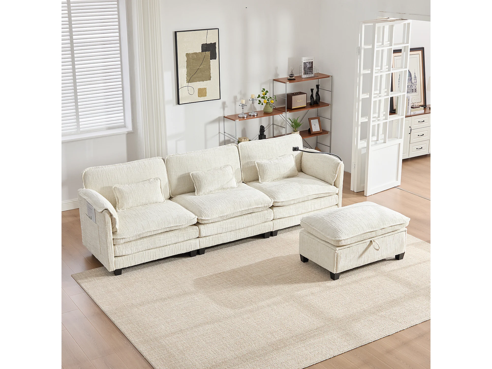 Sofá de 3 plazas, sofá esquinero con puerto USB, bolsillos laterales y soporte para teléfono - Chenilla beige
