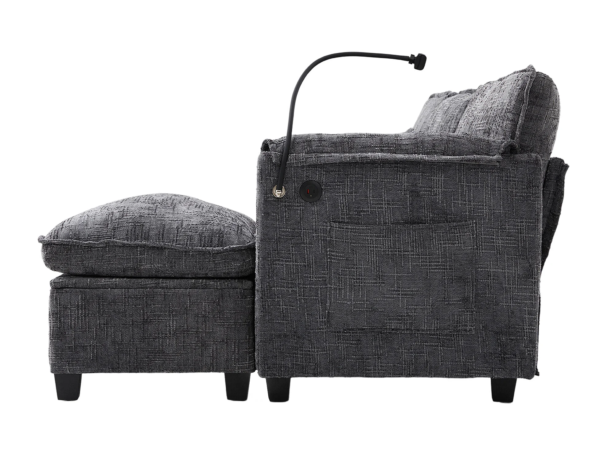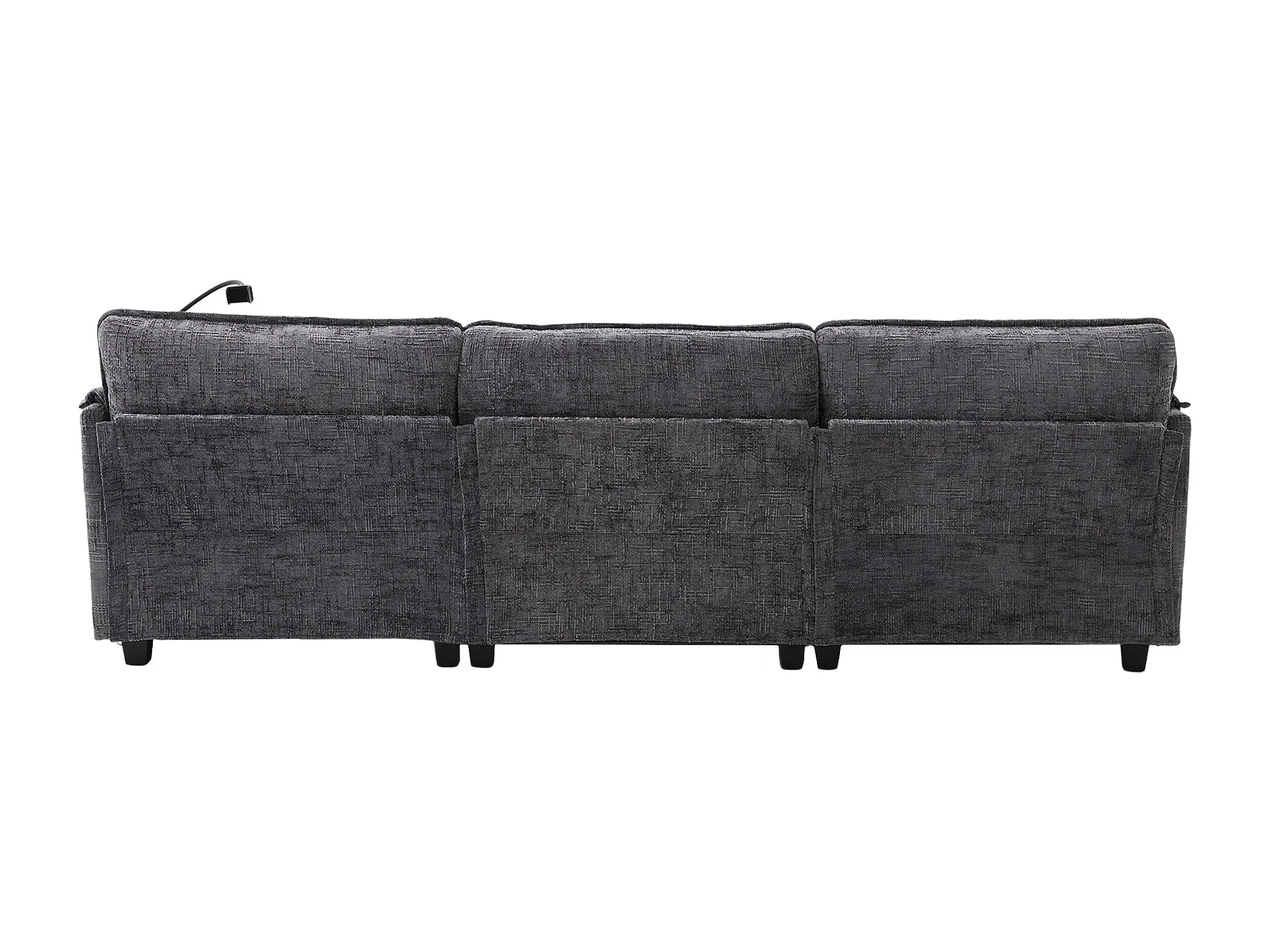 Sofá de 3 plazas, sofá esquinero con puerto USB, bolsillos laterales y soporte para teléfono - Chenilla gris