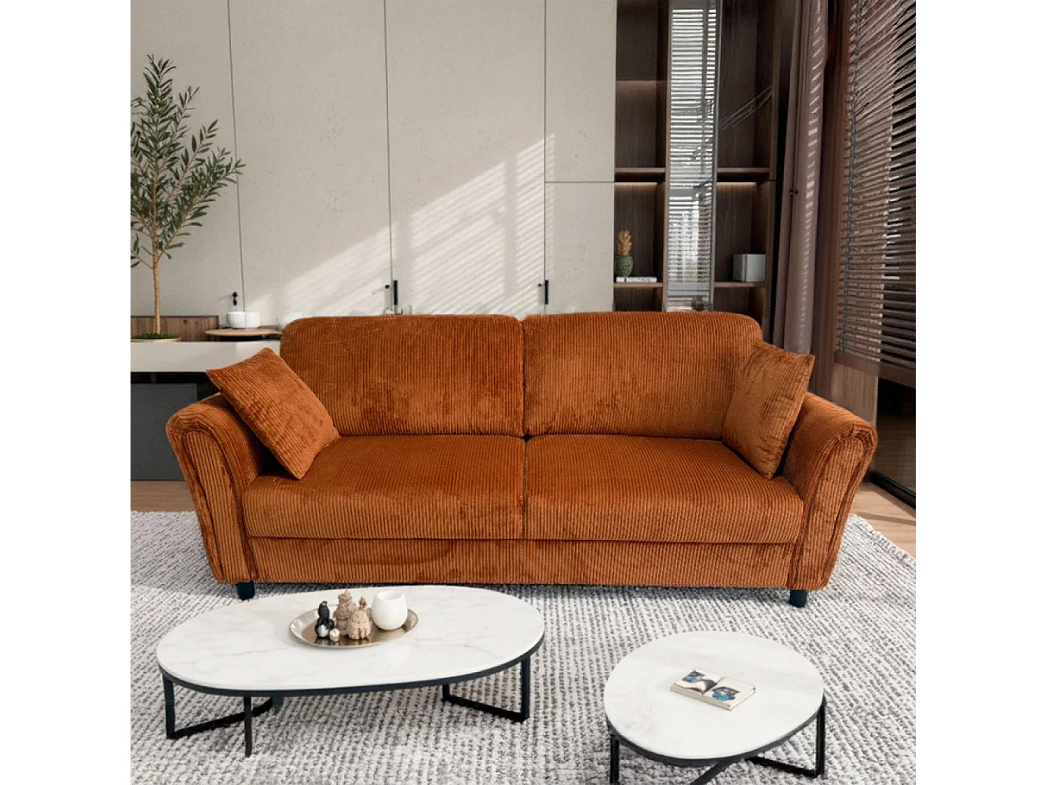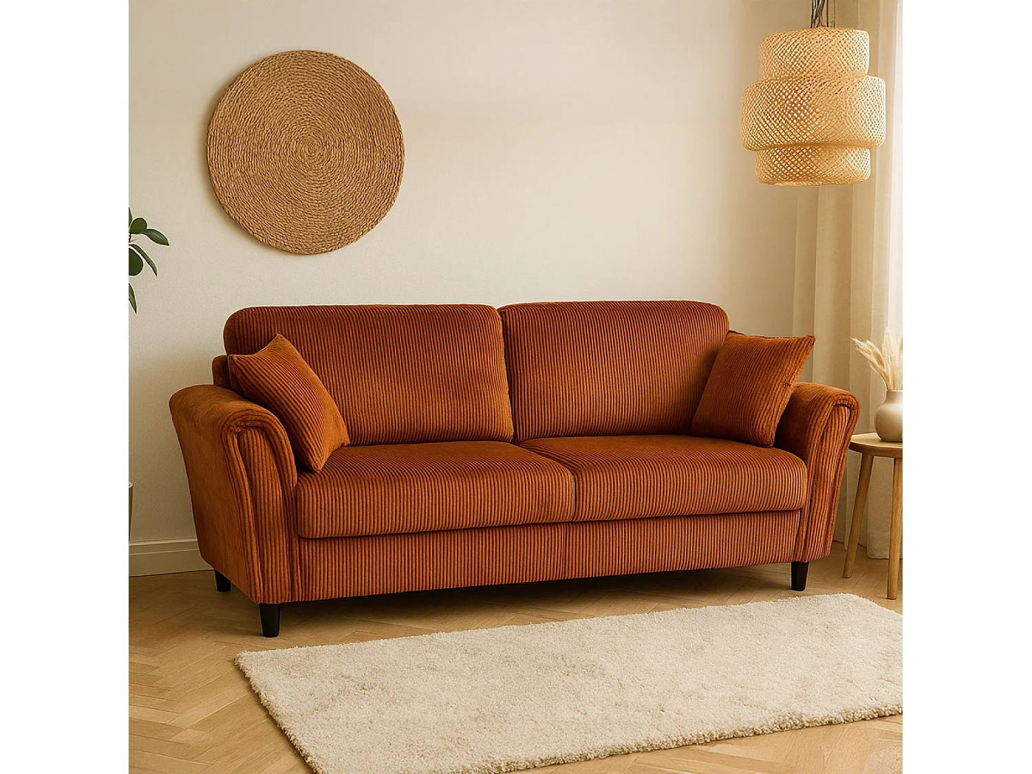 Sofá de 4 plazas en terciopelo acanalado terracota LUCERNE - Cómodo y elegante