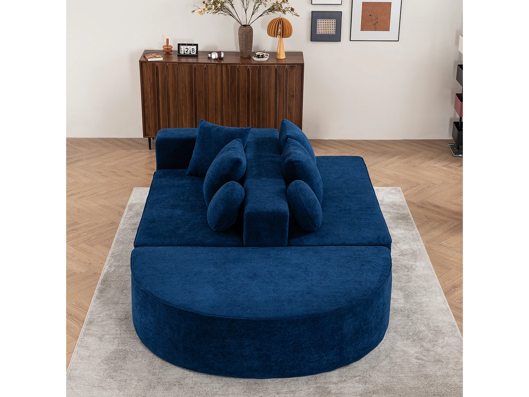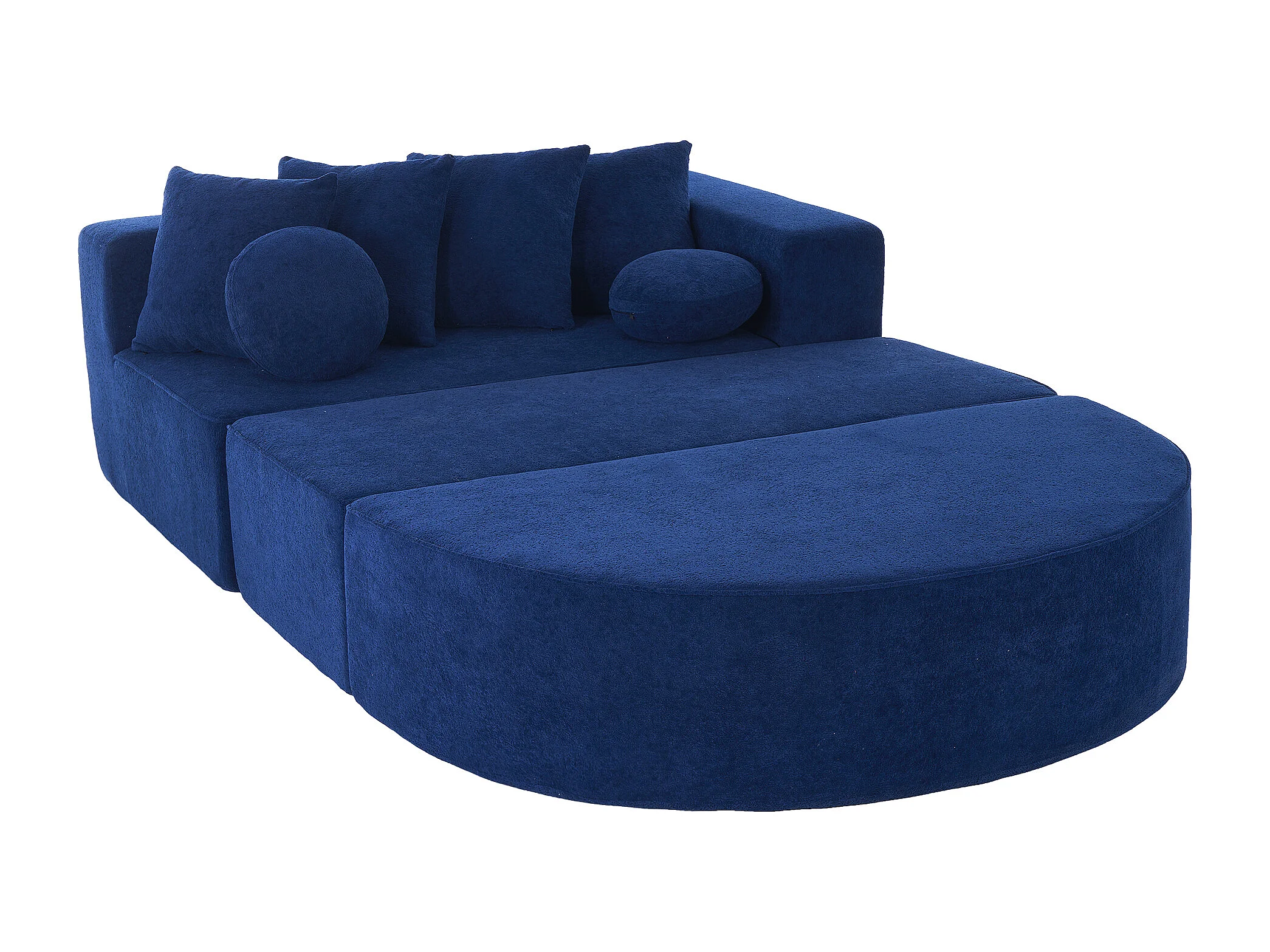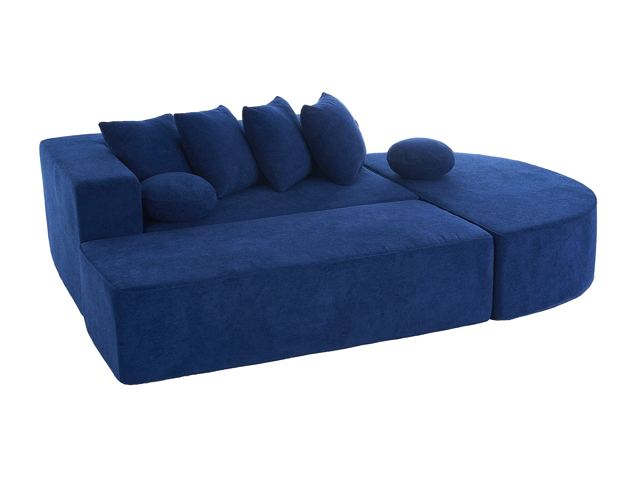 Sofá de 5 plazas – Sofá segmentado con 6 cojines y reposabrazos – chenilla azul