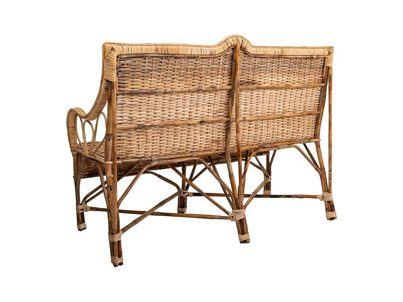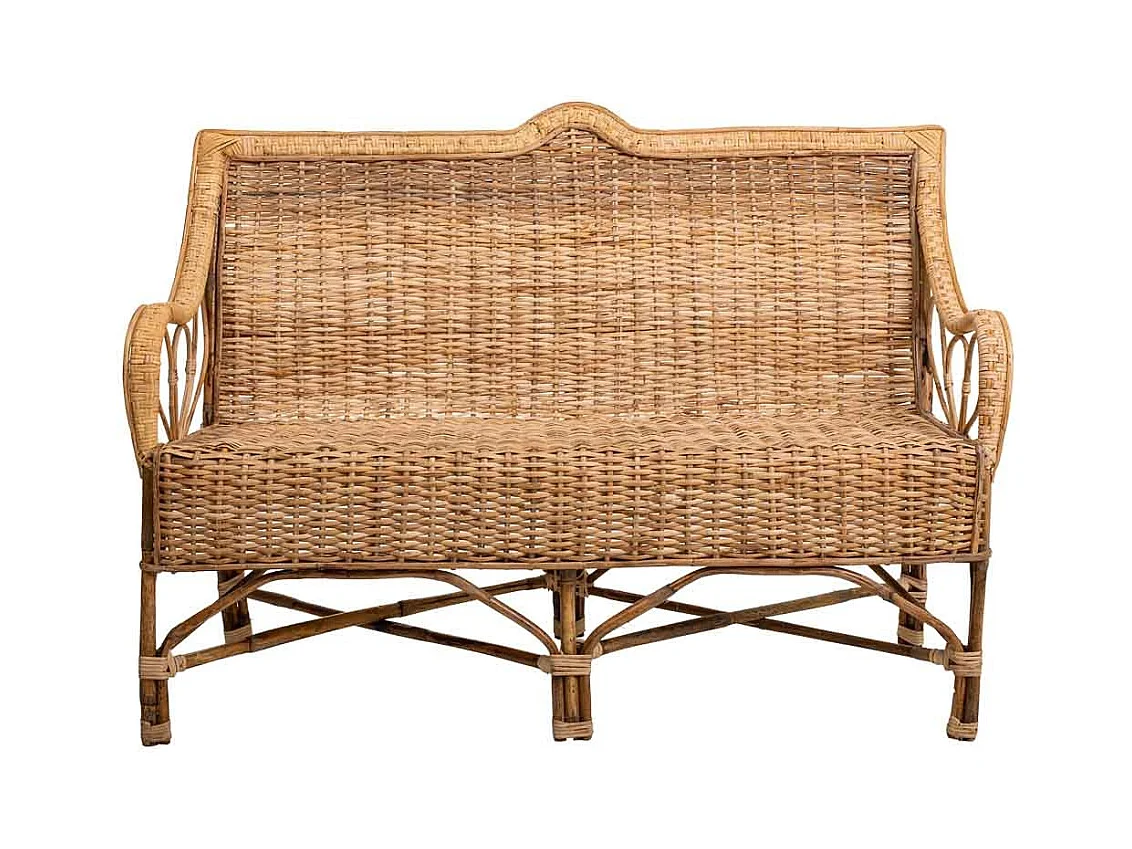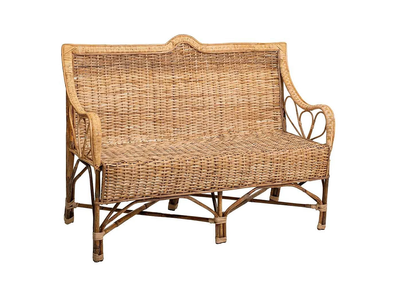 Sofá de bambú y ratán marrón 130x48x99