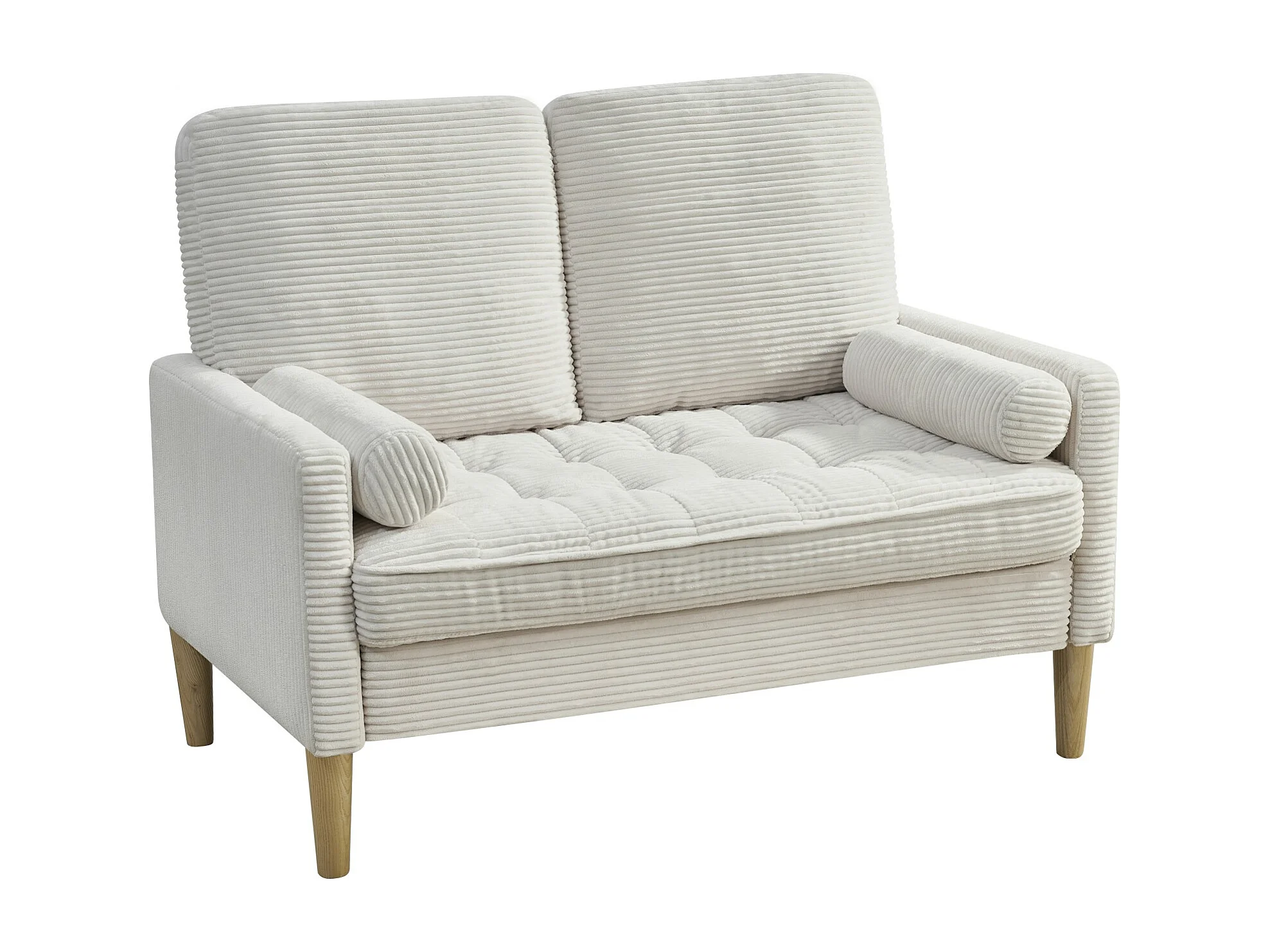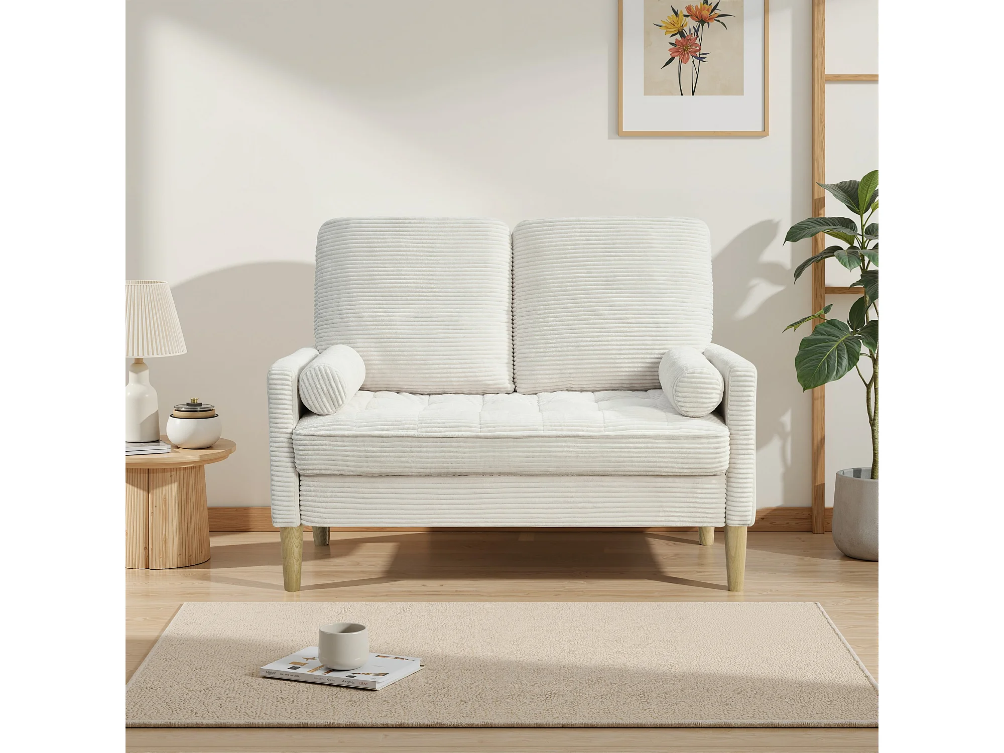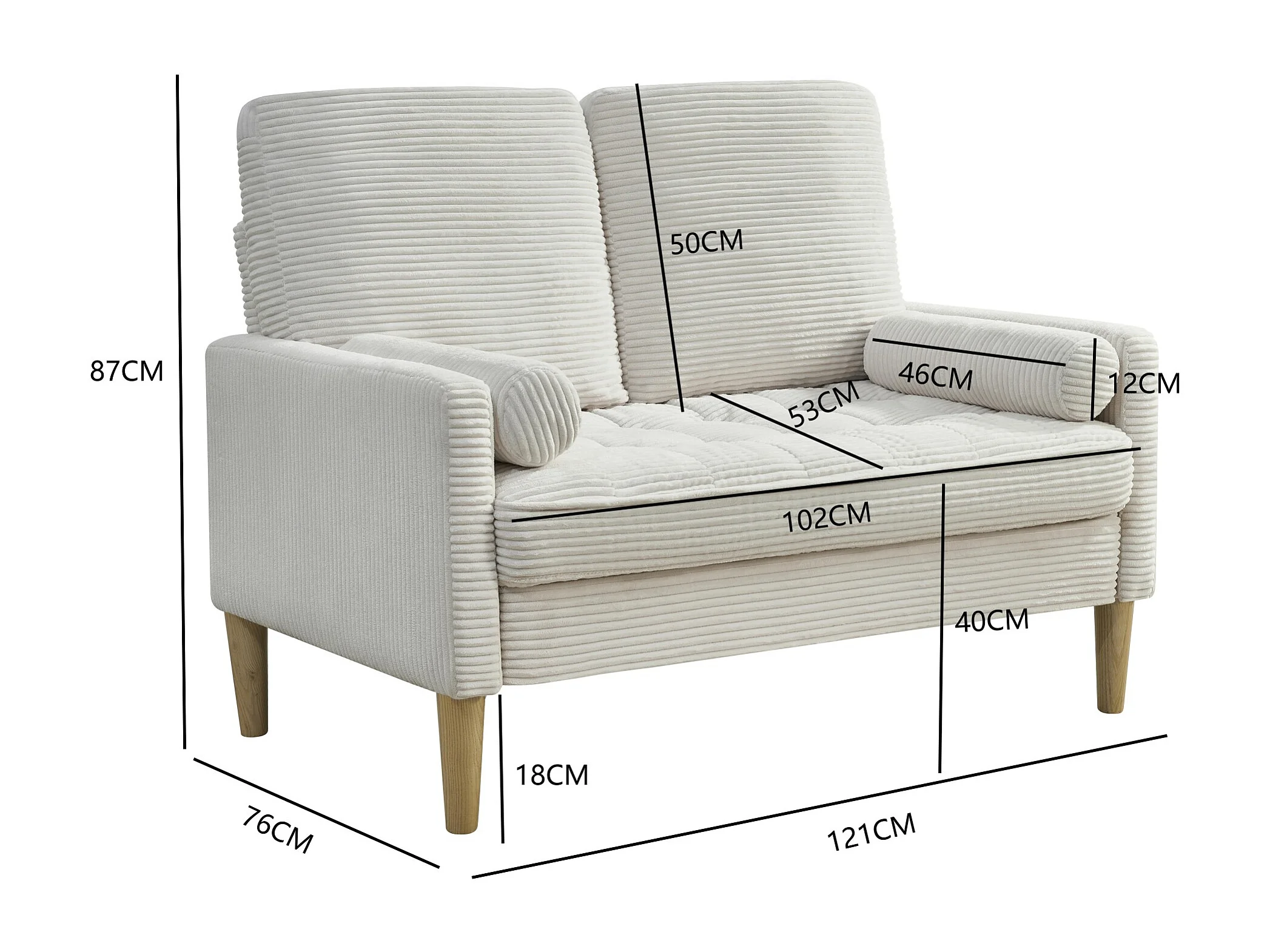 Sofá de dos plazas en pana, estilo nórdico, sofá tapizado con cojines mullidos, beige