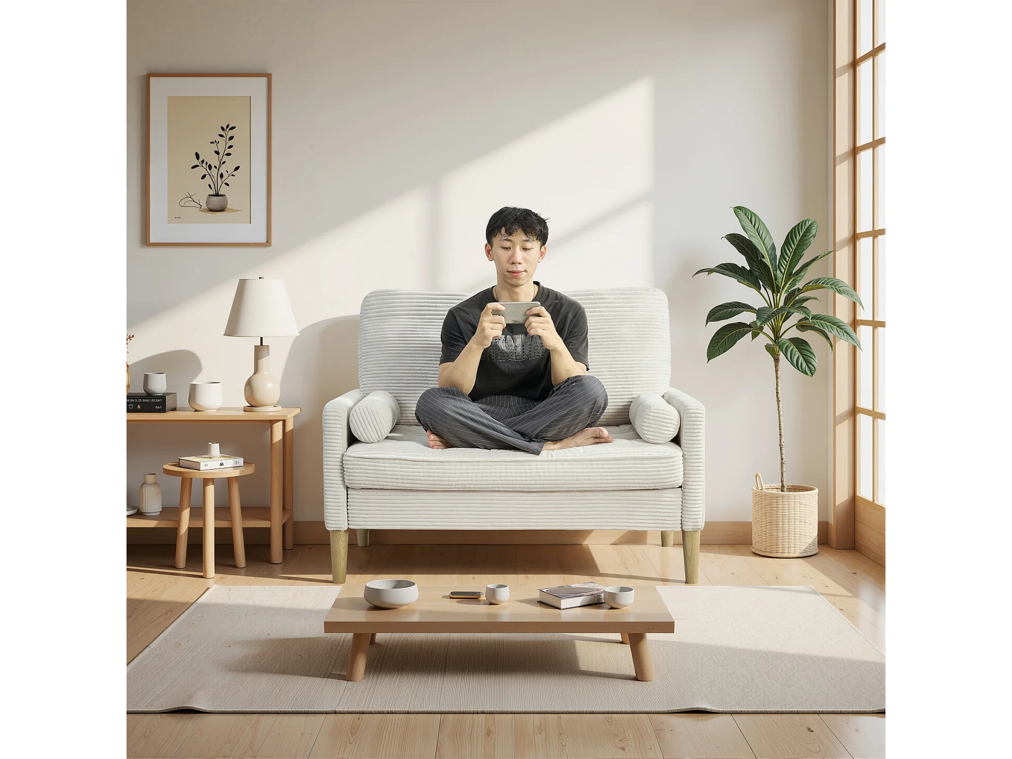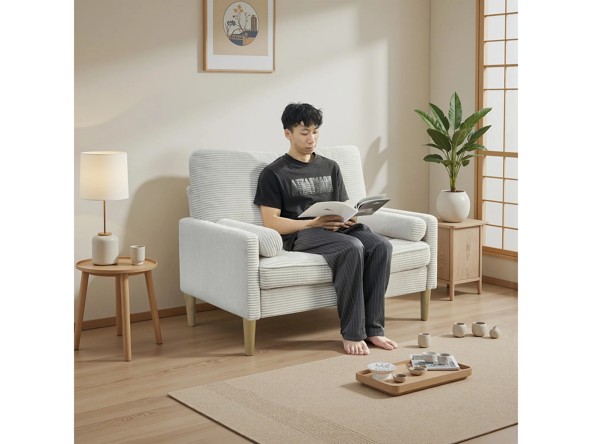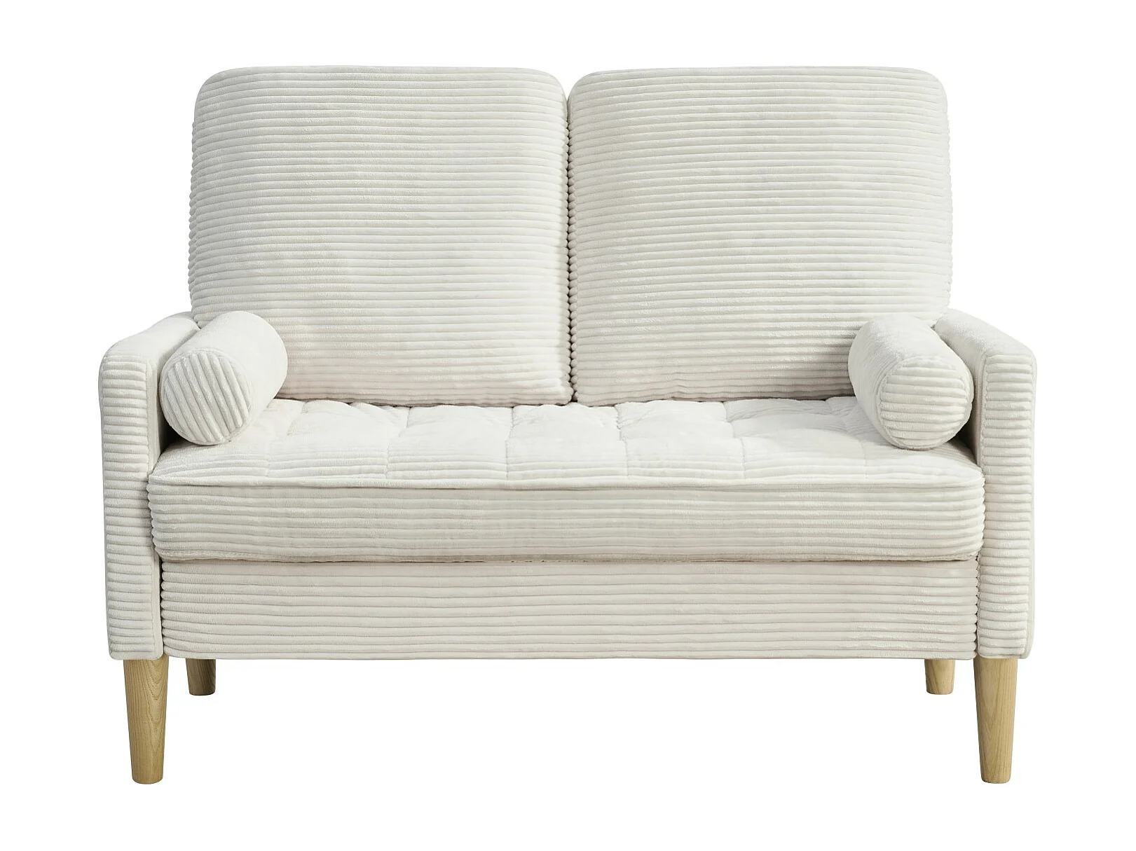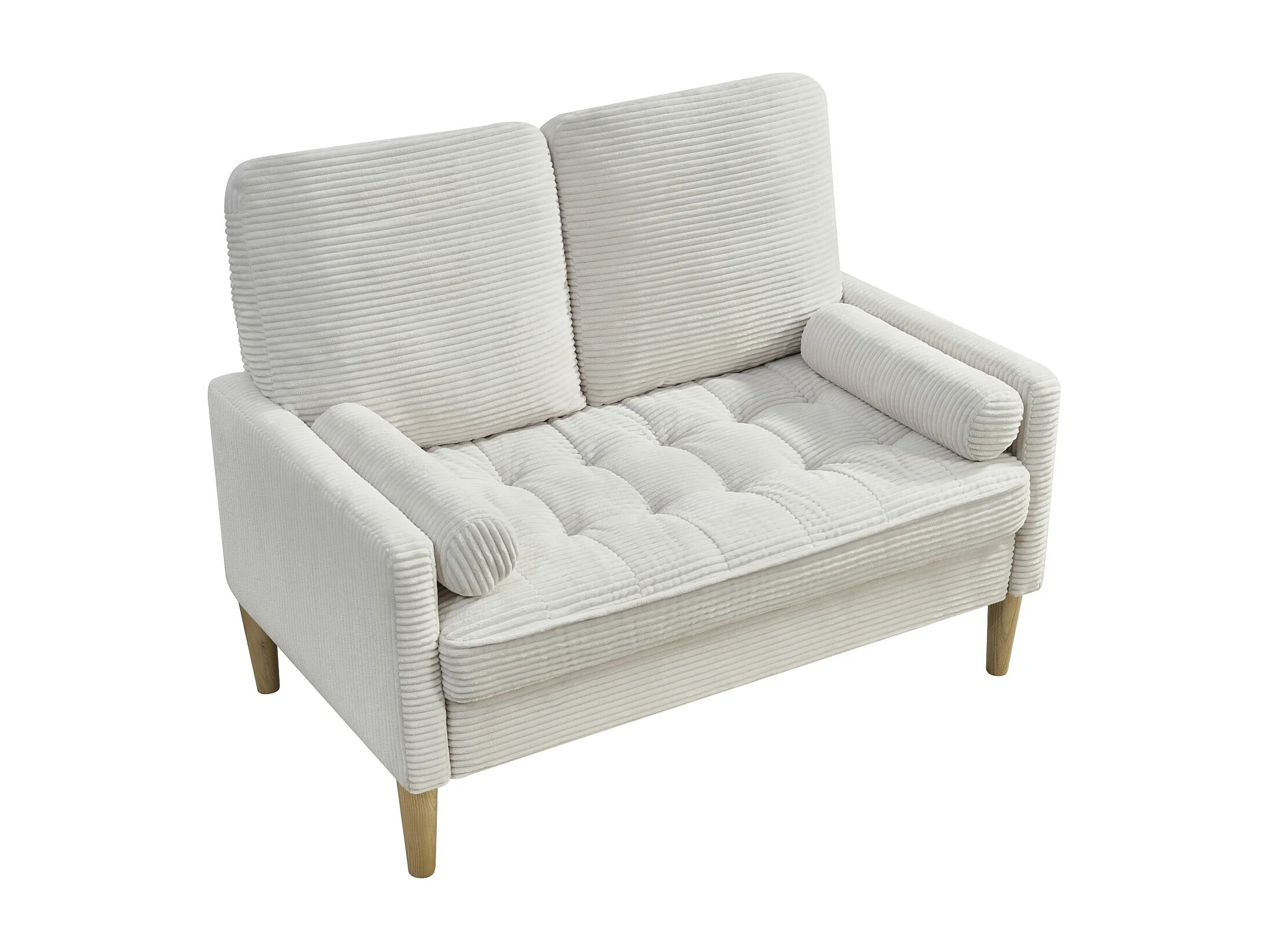 Sofá de dos plazas en pana, estilo nórdico, sofá tapizado con cojines mullidos, beige