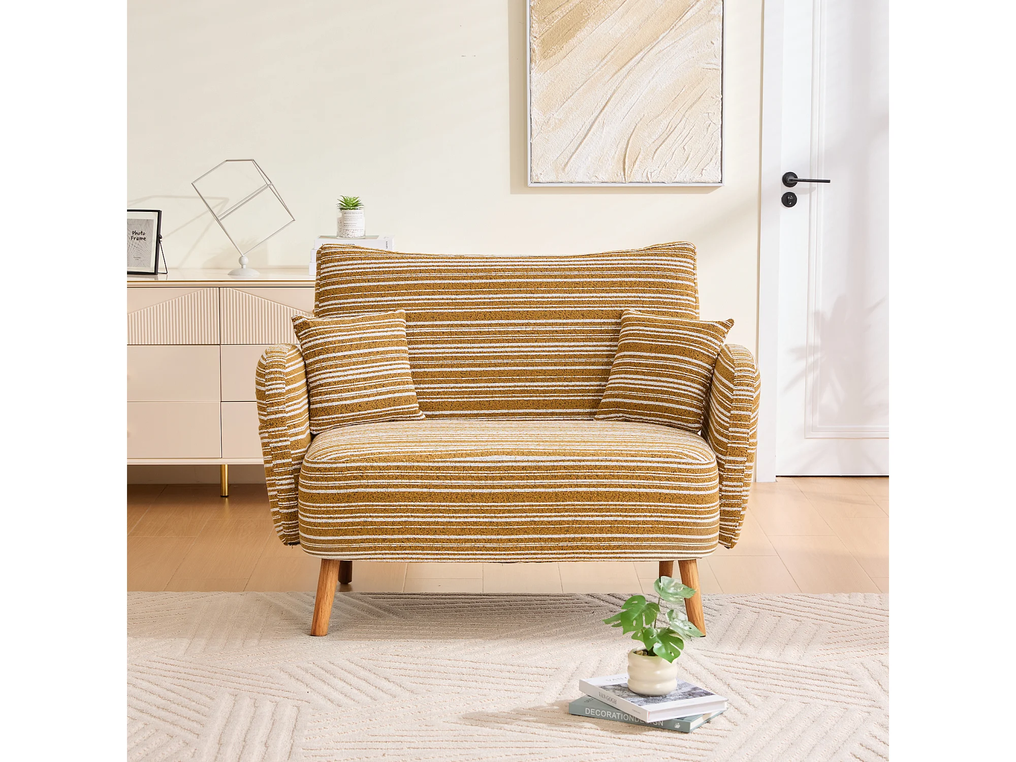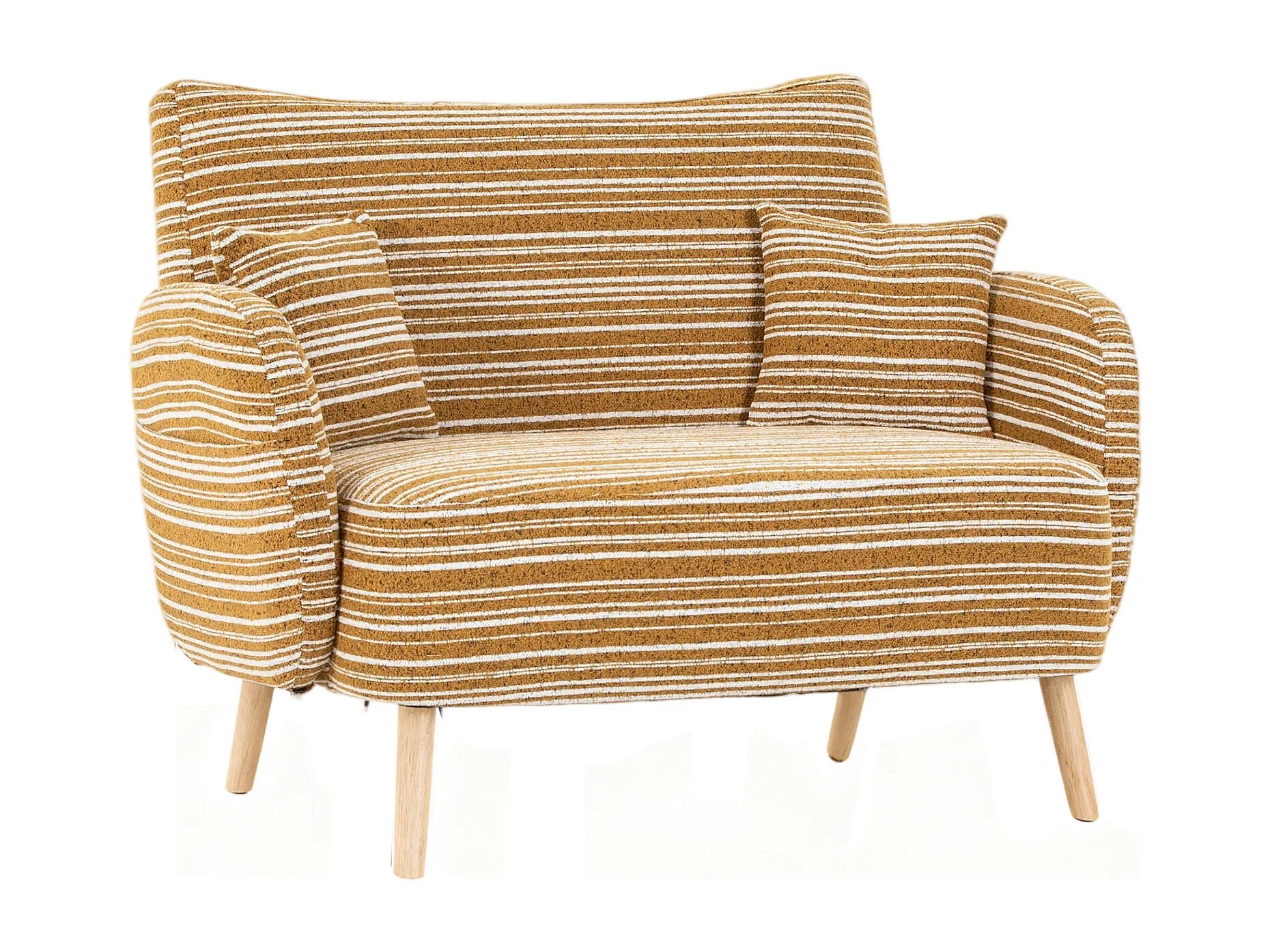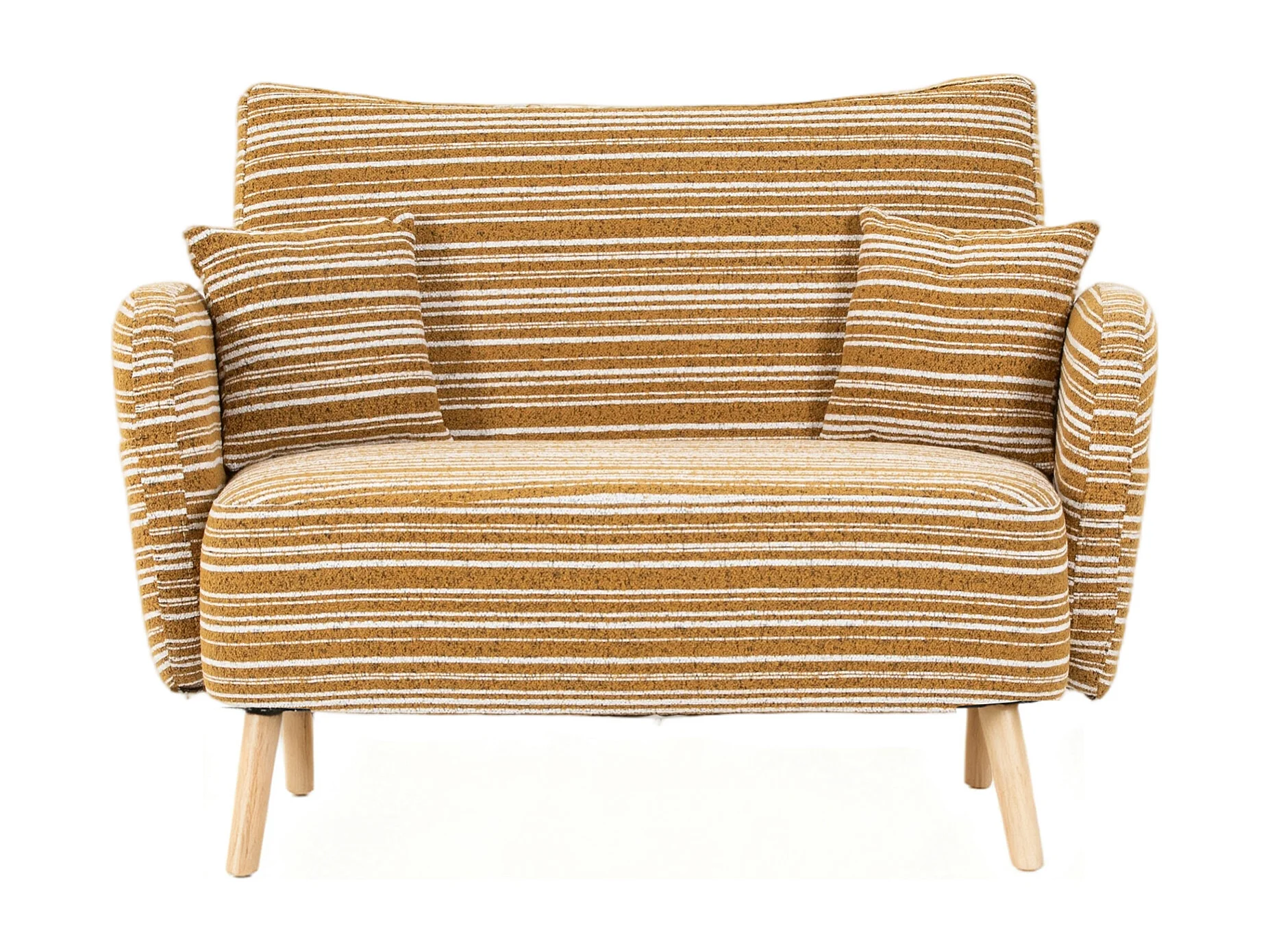 Sofá de dos plazas en tejido bouclé amarillo mostaza - Con bolsillos laterales y 2 cojines