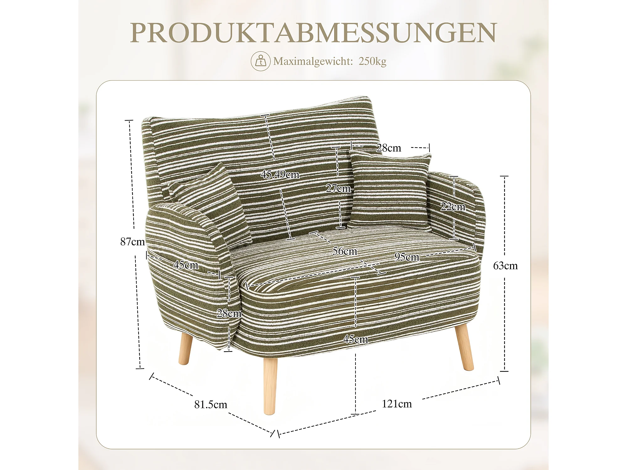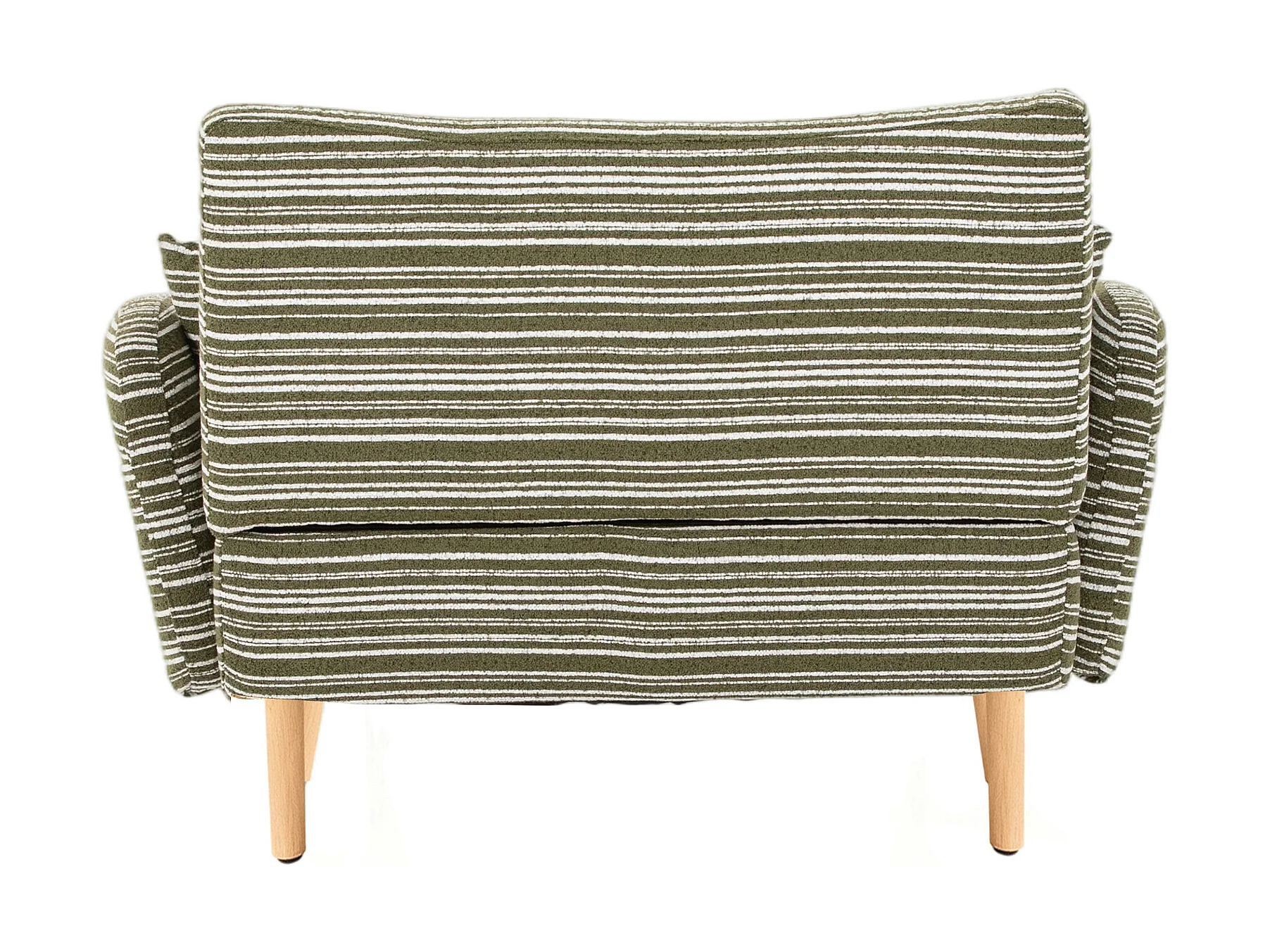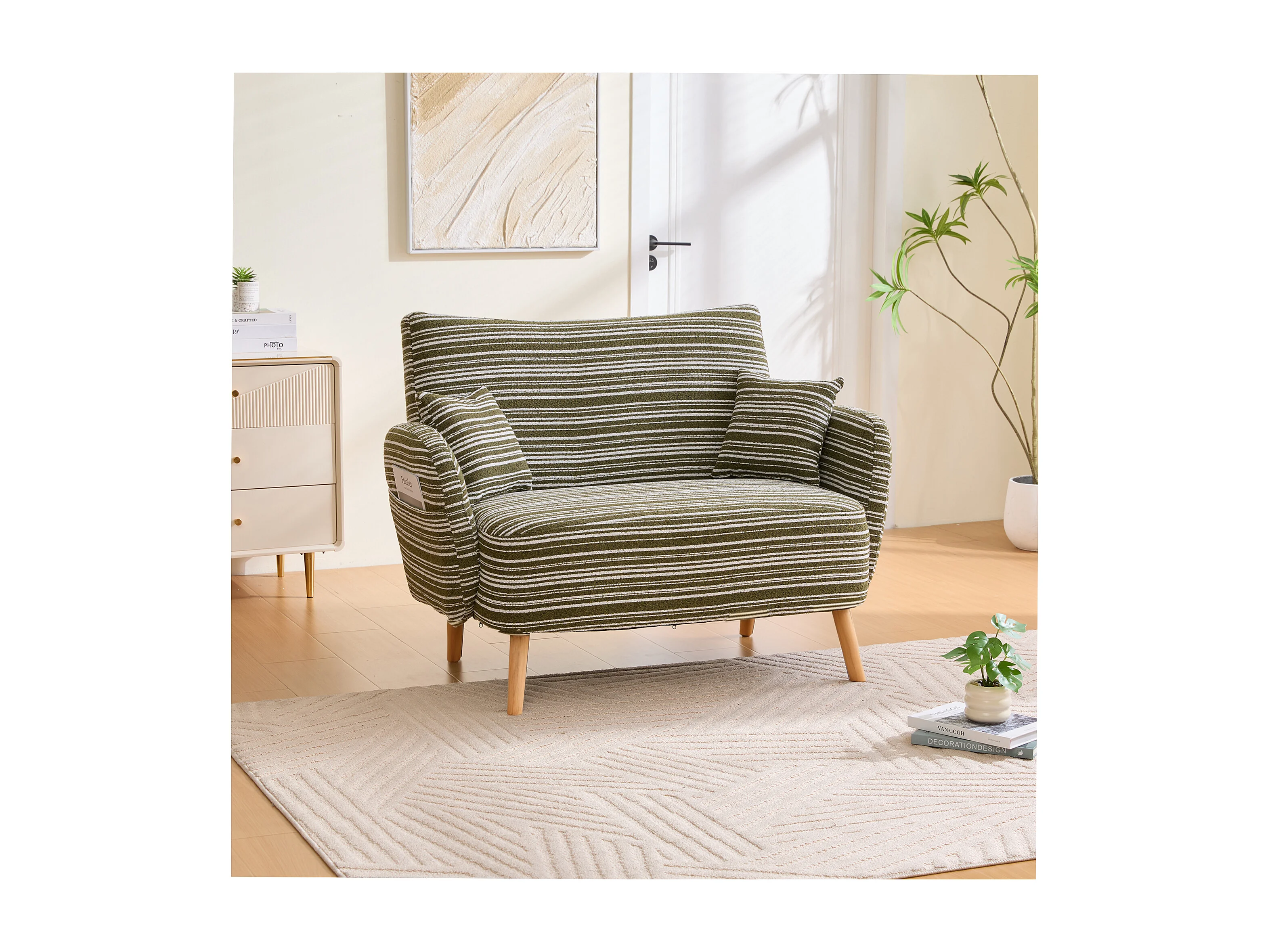 Sofá de dos plazas en tejido bouclé verde oliva - Con bolsillos laterales y dos cojines