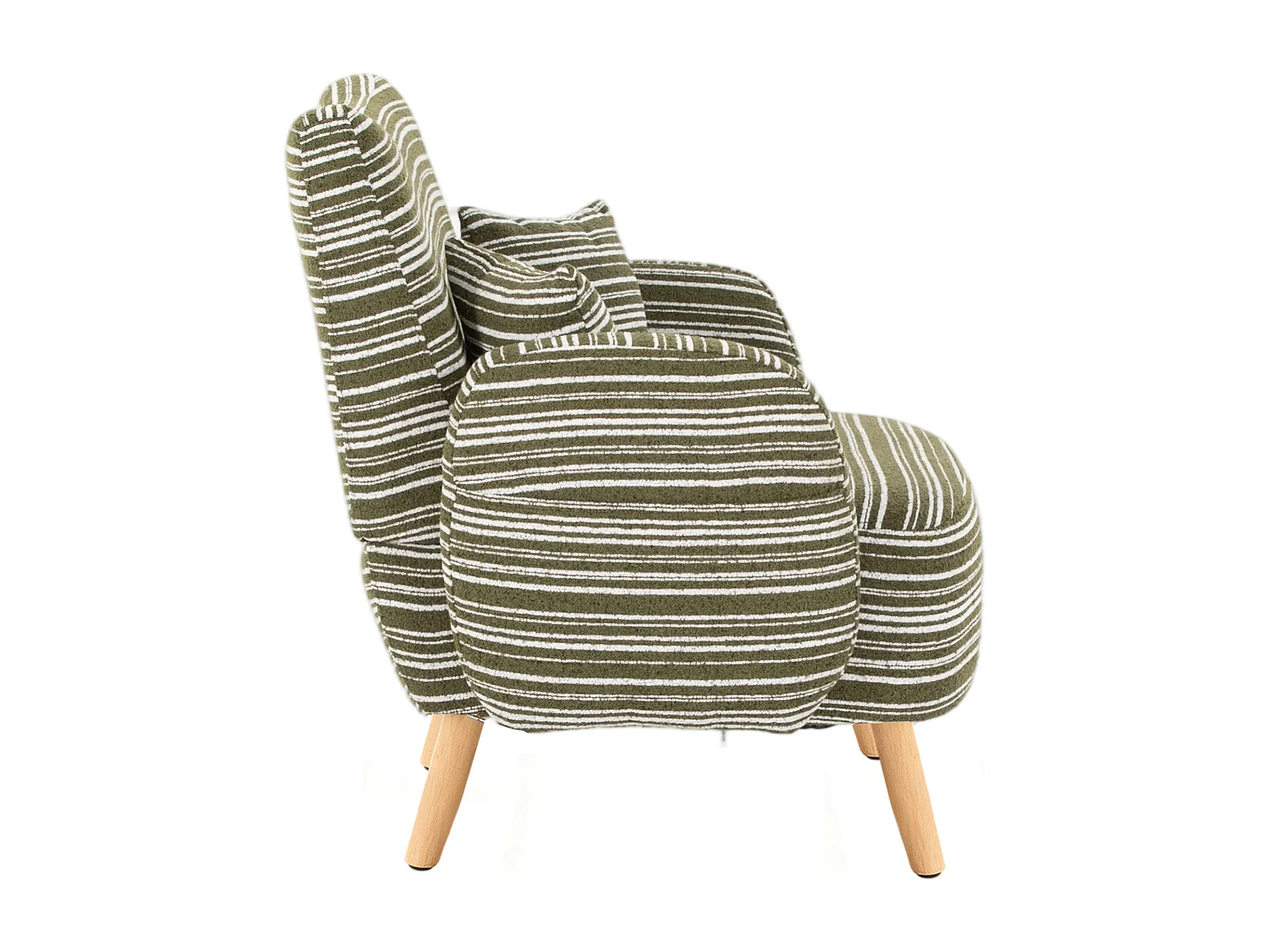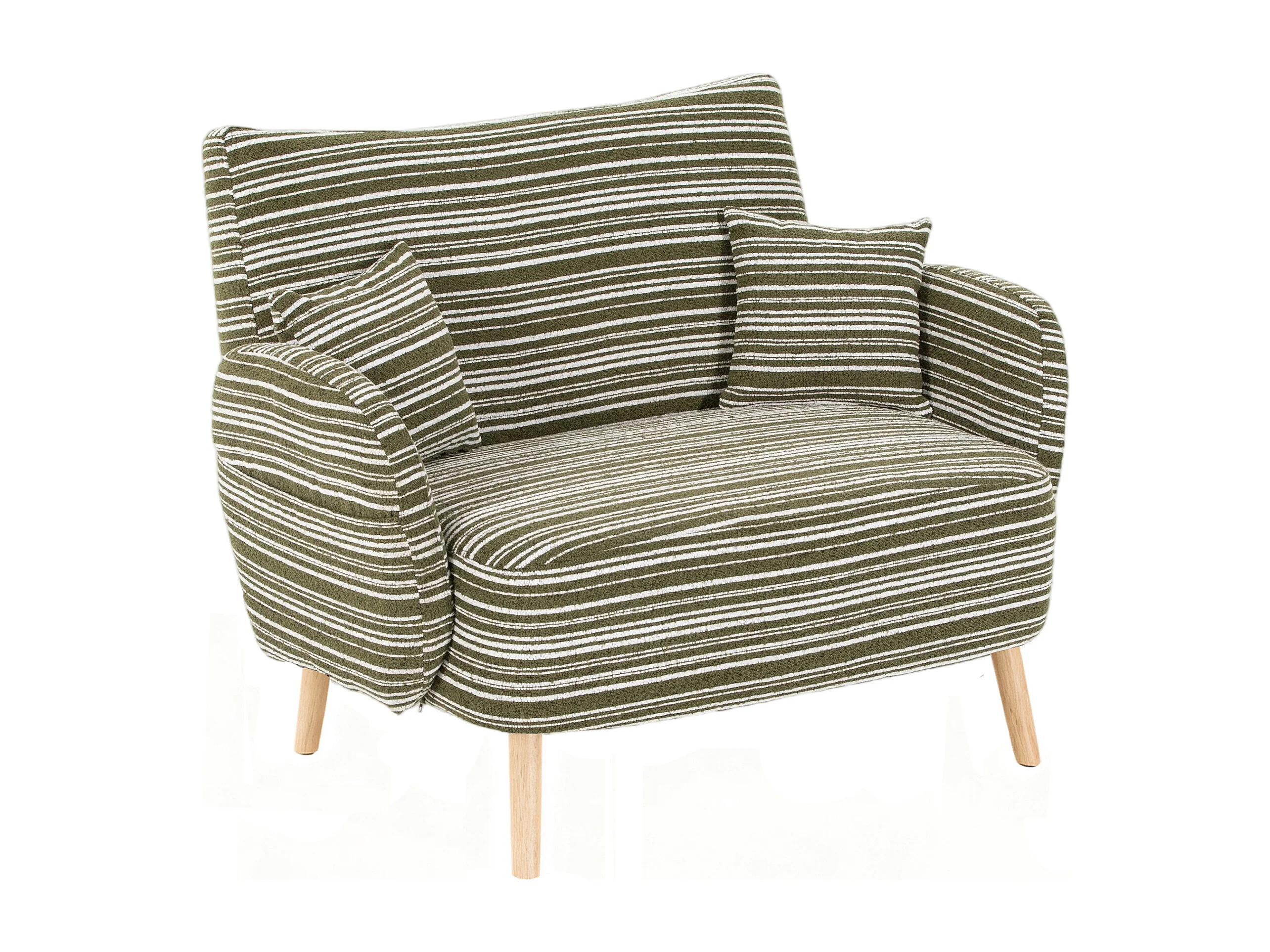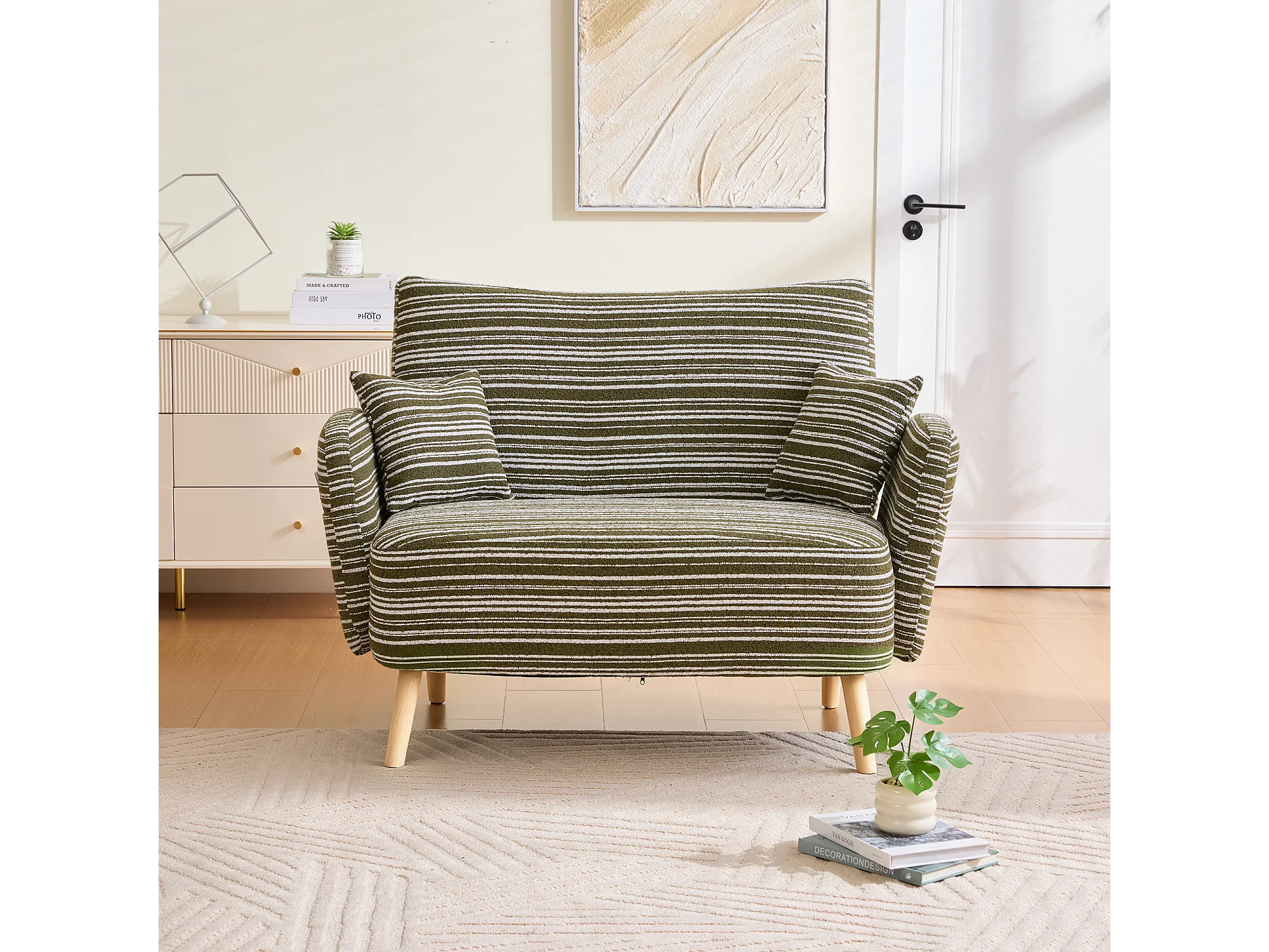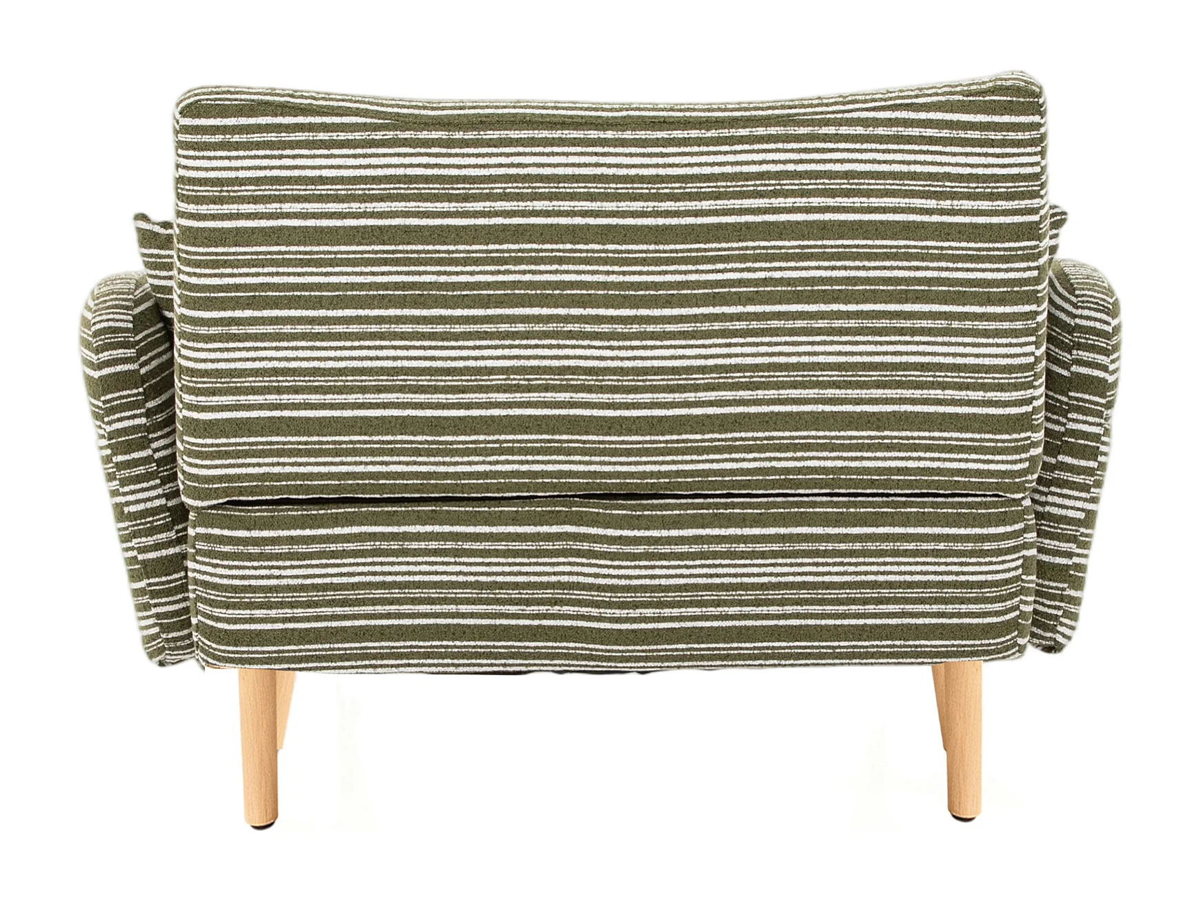 Sofá de dos plazas en tejido bouclé verde oliva - Con bolsillos laterales y dos cojines