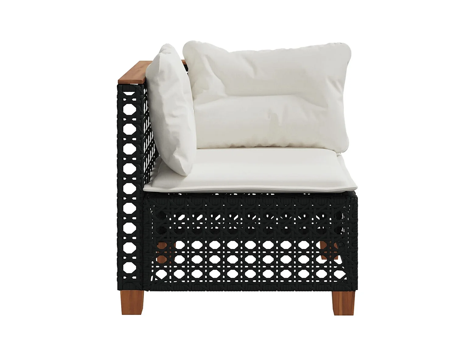 Sofá de esquina de jardín con cojines ratán sintético negro
