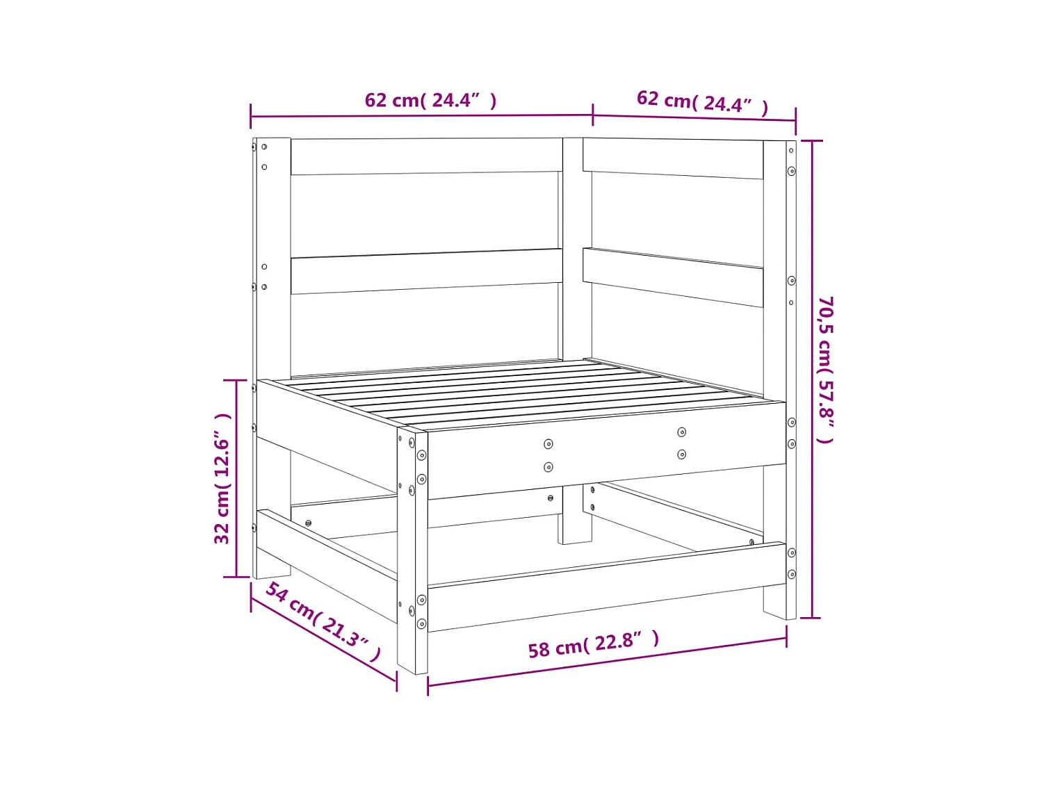 Sofá de esquina de jardín madera maciza de pino