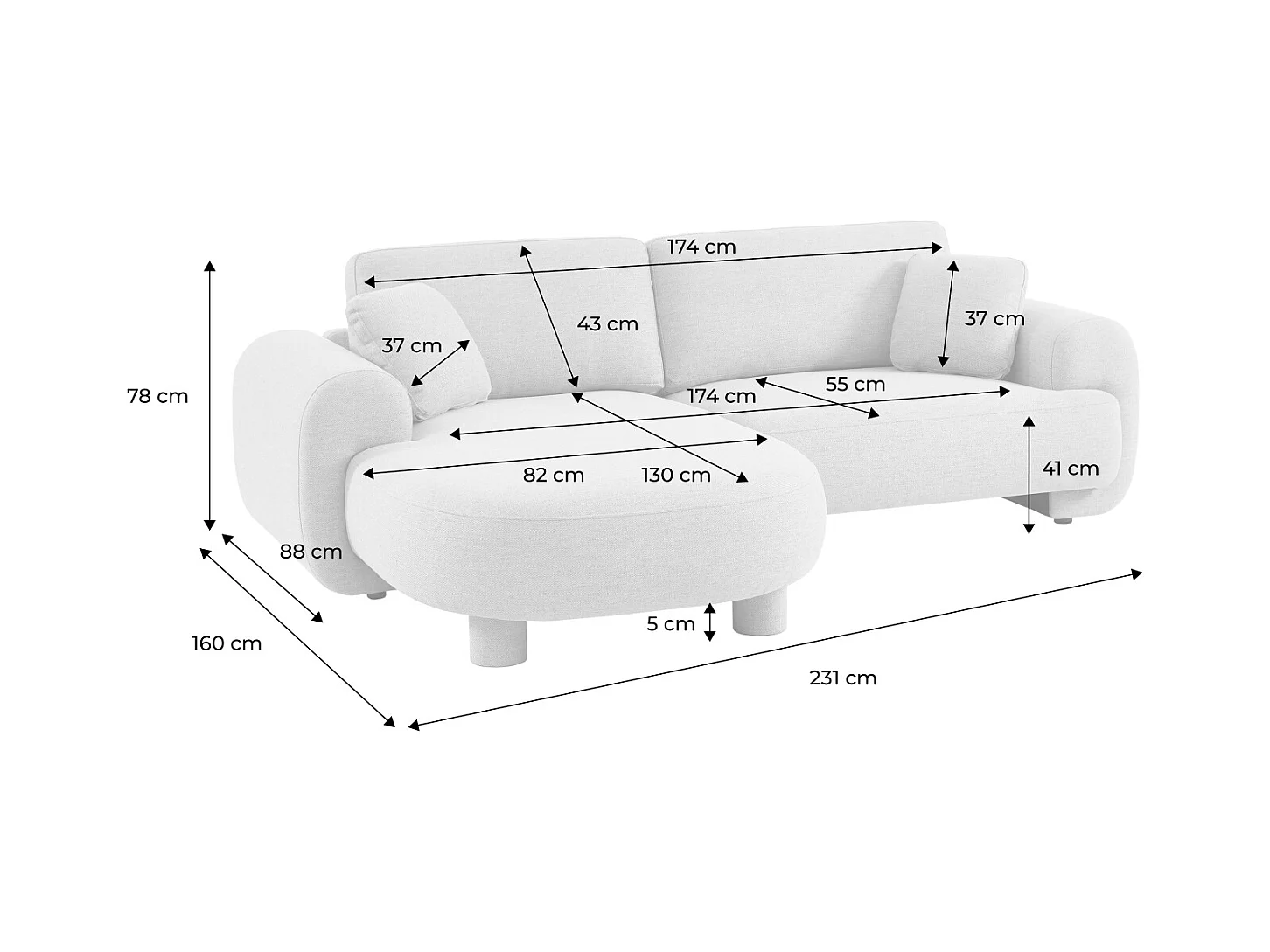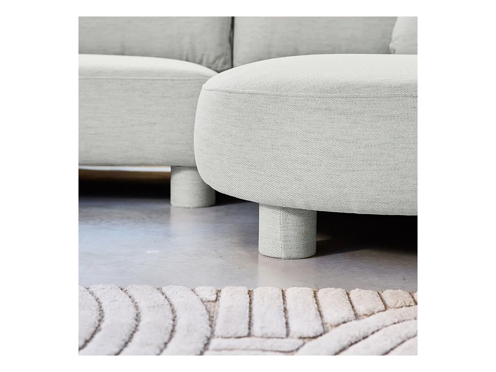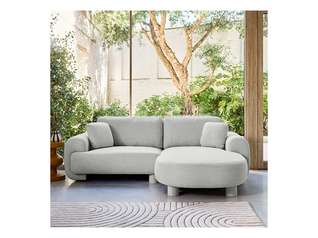 Sofá esquinero izquierdo con patas redondas de 3 plazas gris claro