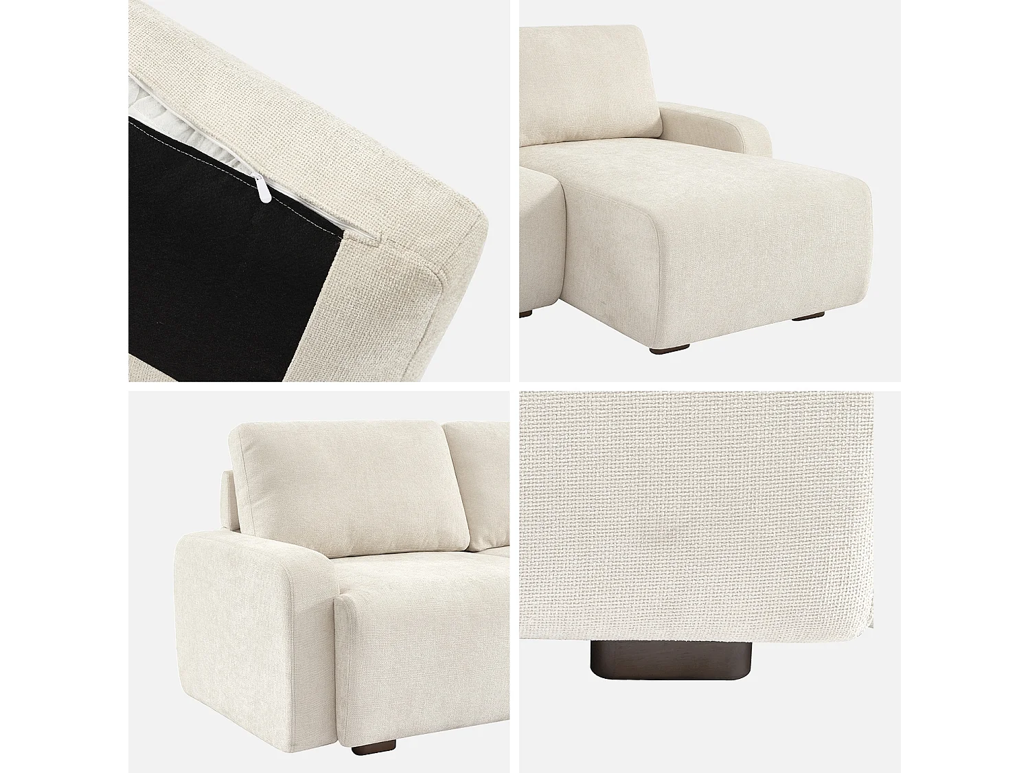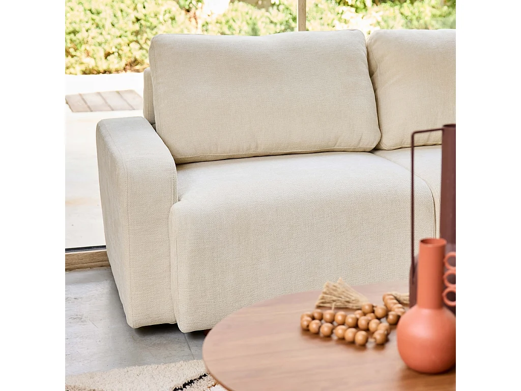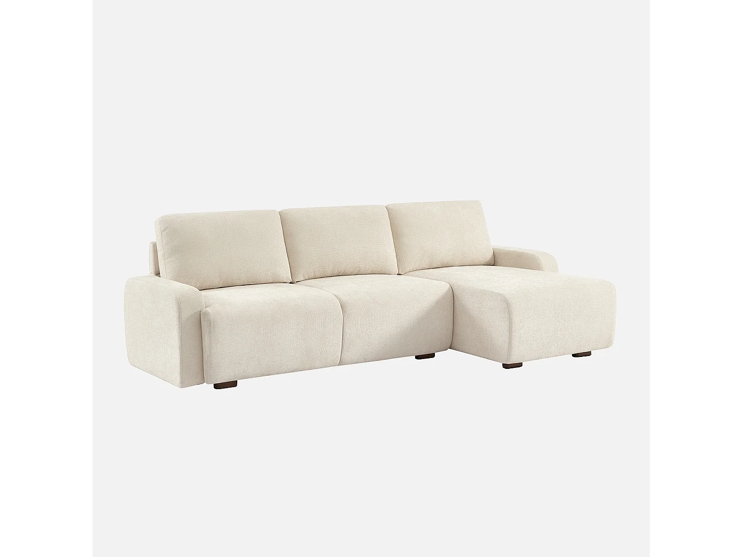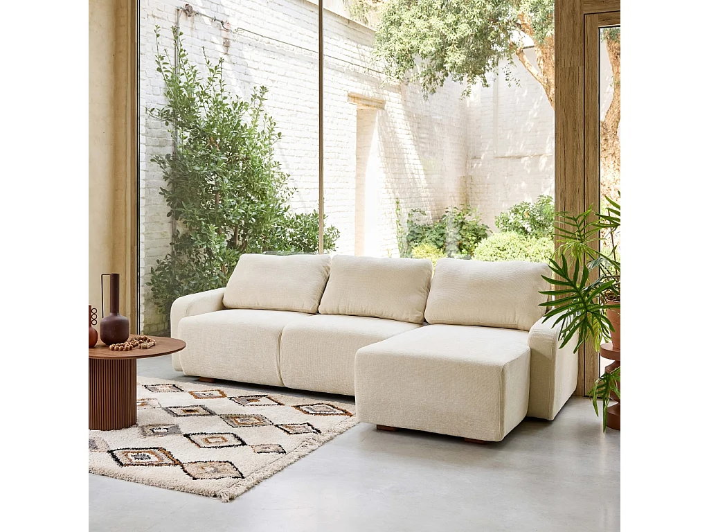 Sofá de esquina derecha de tela liso, 3 plazas blanco roto