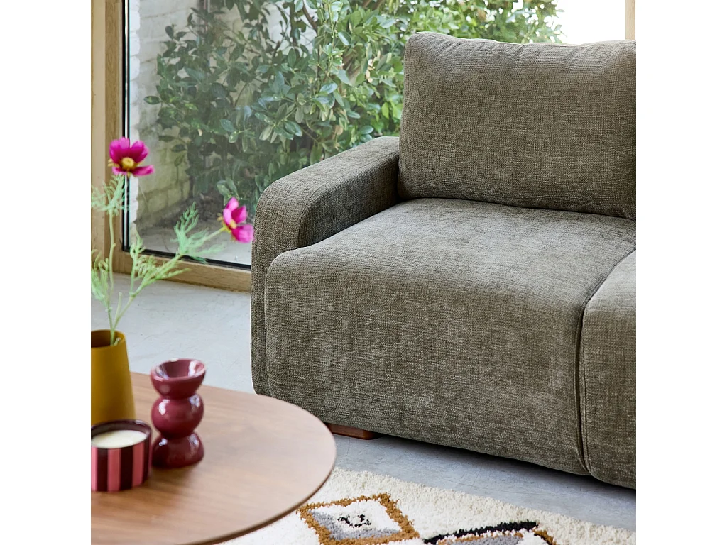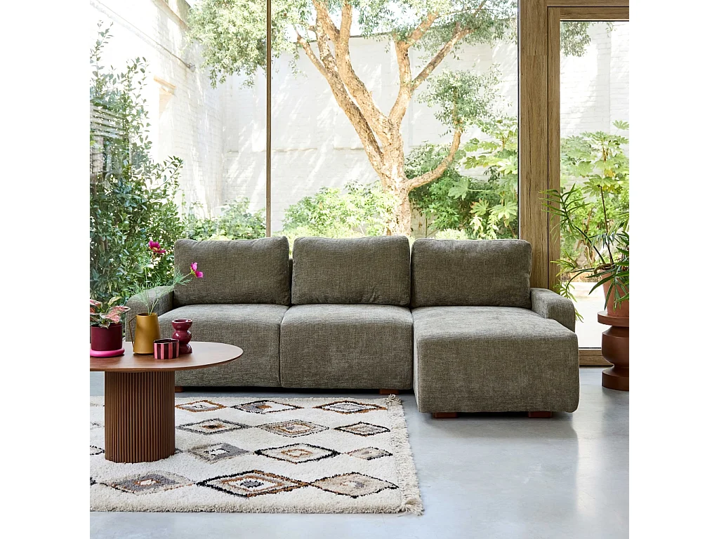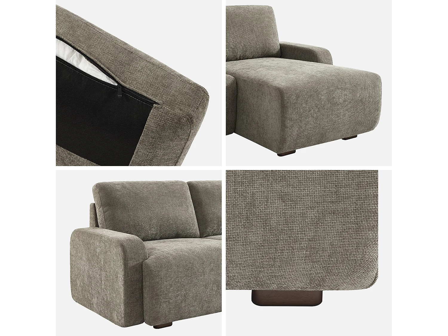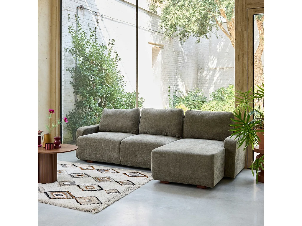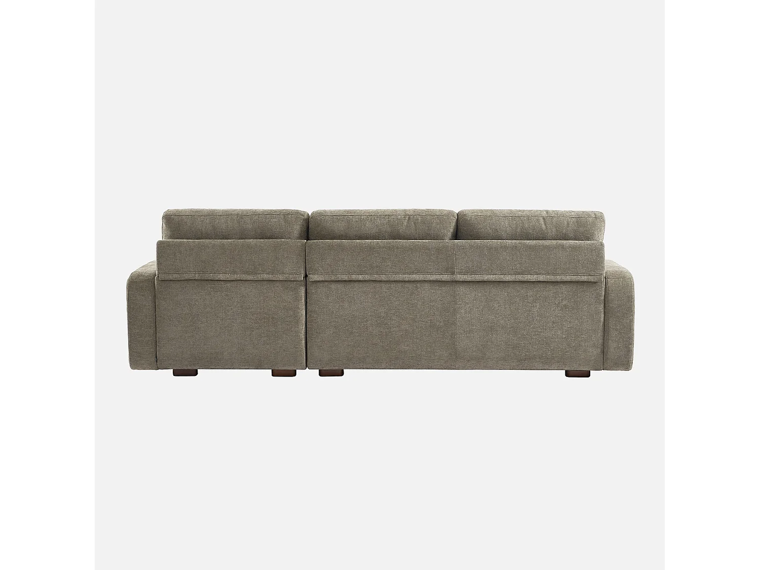 Sofá de esquina derecha de tela liso, 3 plazas verde grisáceo