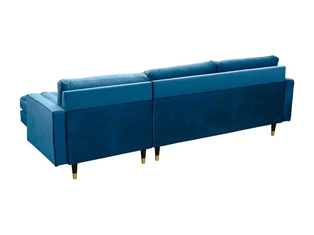Sofá de esquina KOLIRI azul – 4 plazas – Ángulo derecho – Sofá de diseño en terciopelo y madera maciza