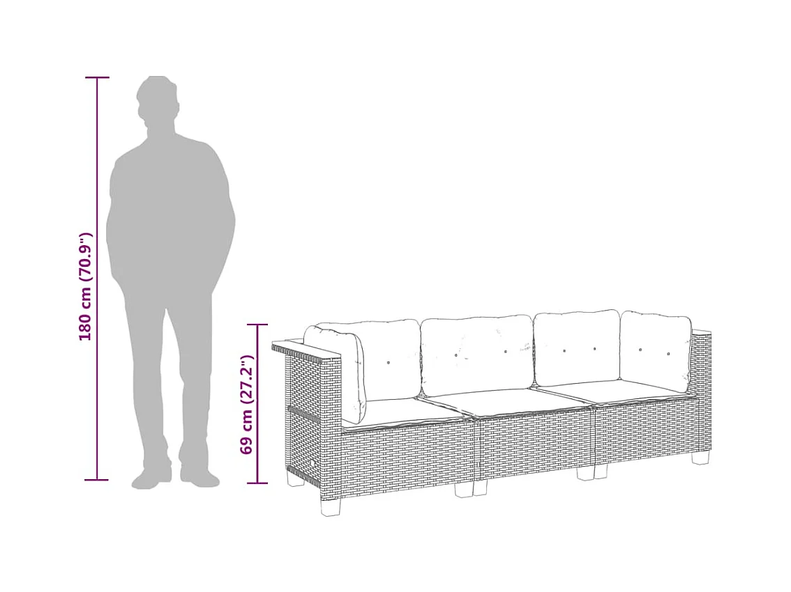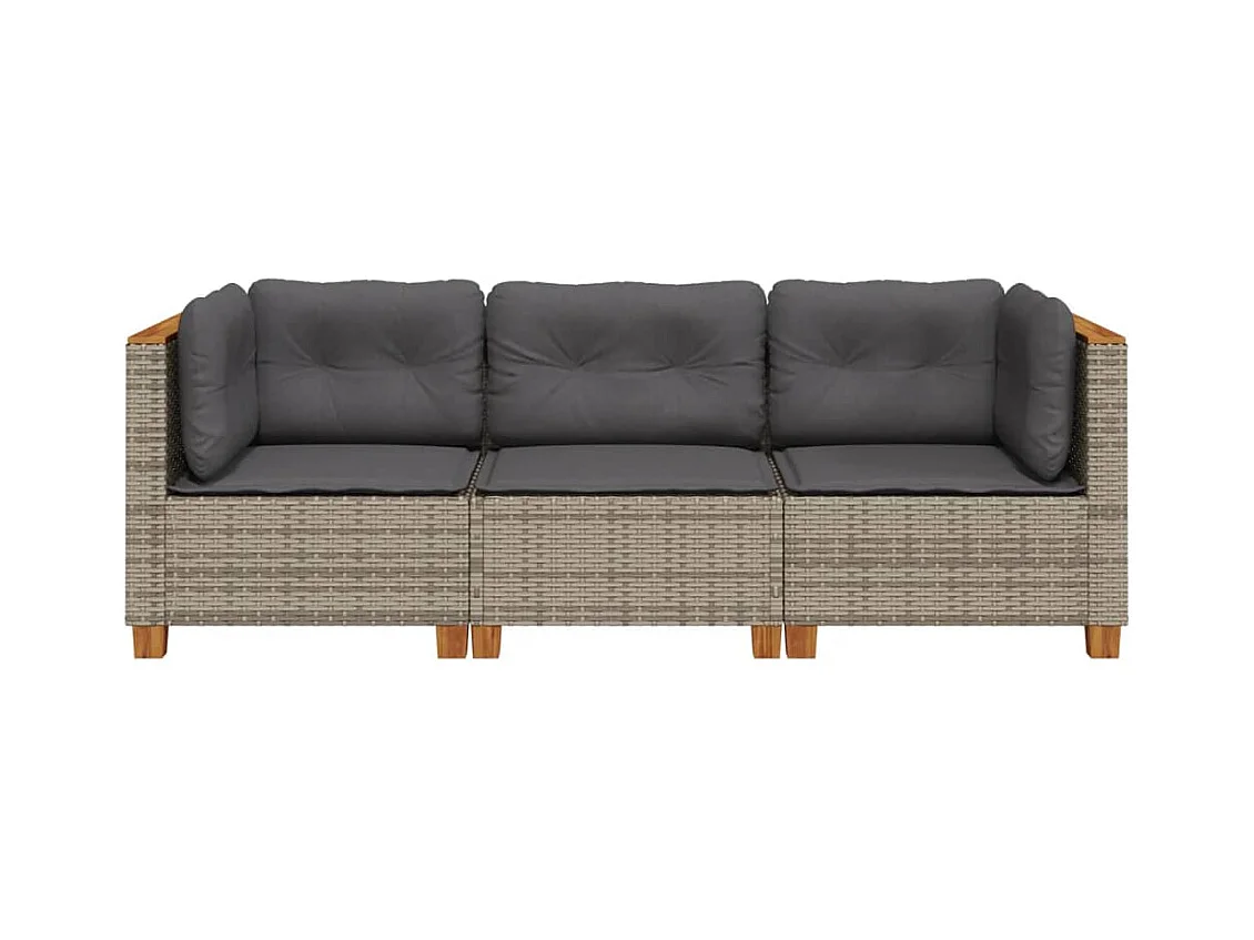 Sofá de jardín de 3 plazas con cojines ratán sintético gris