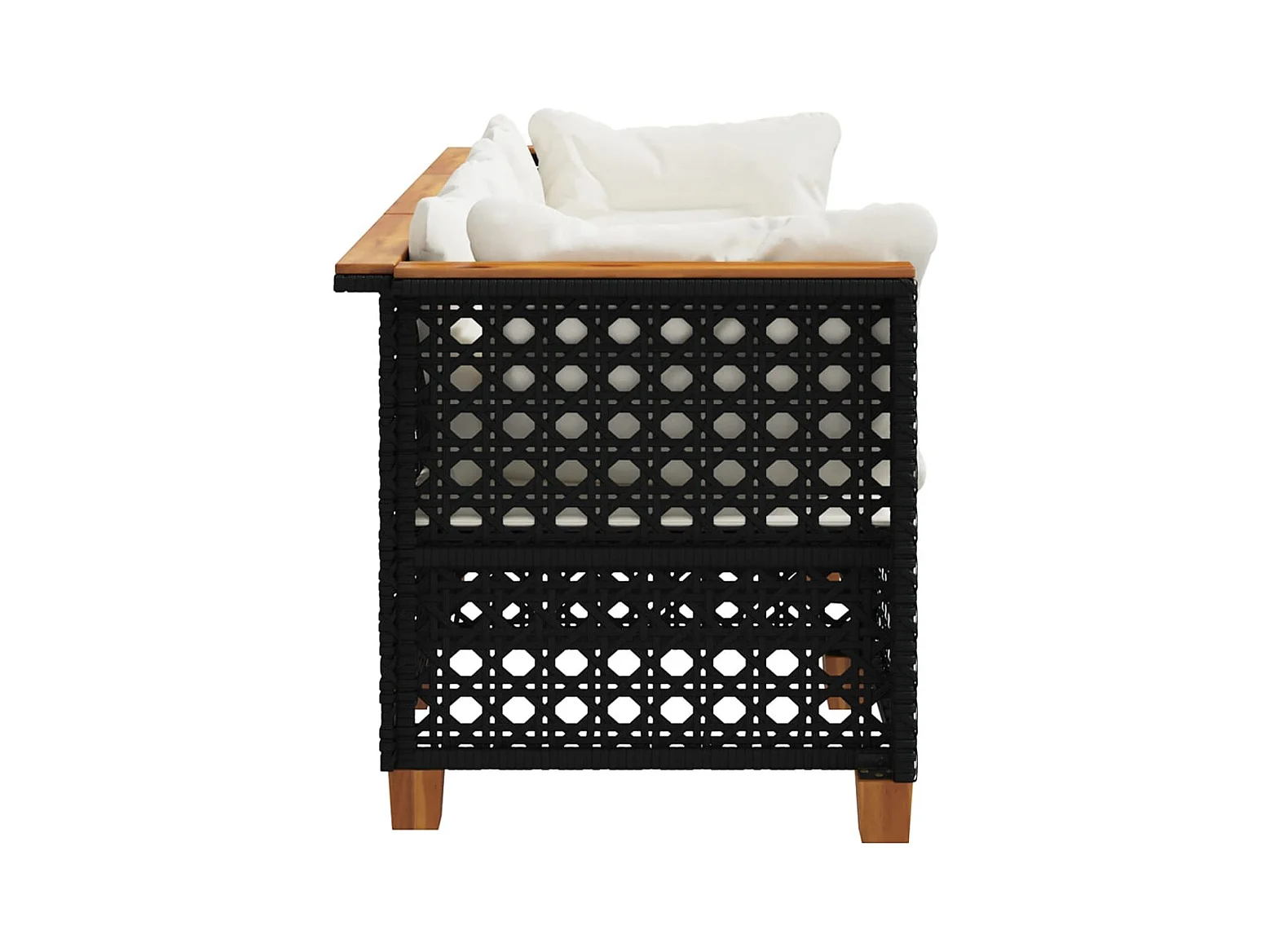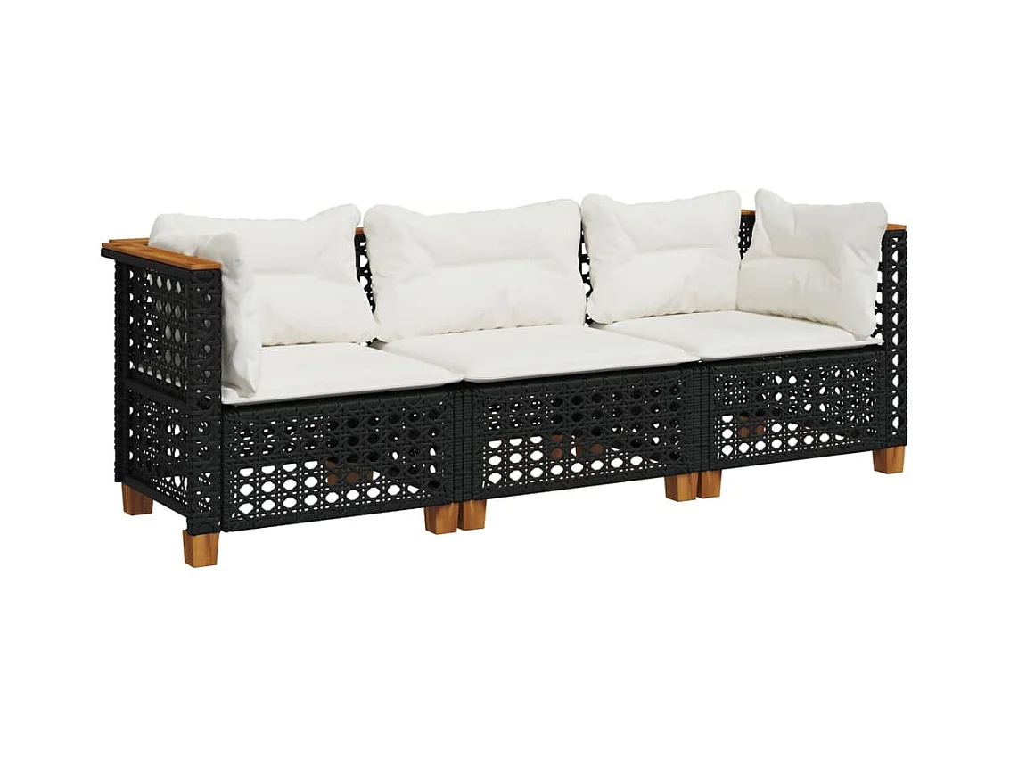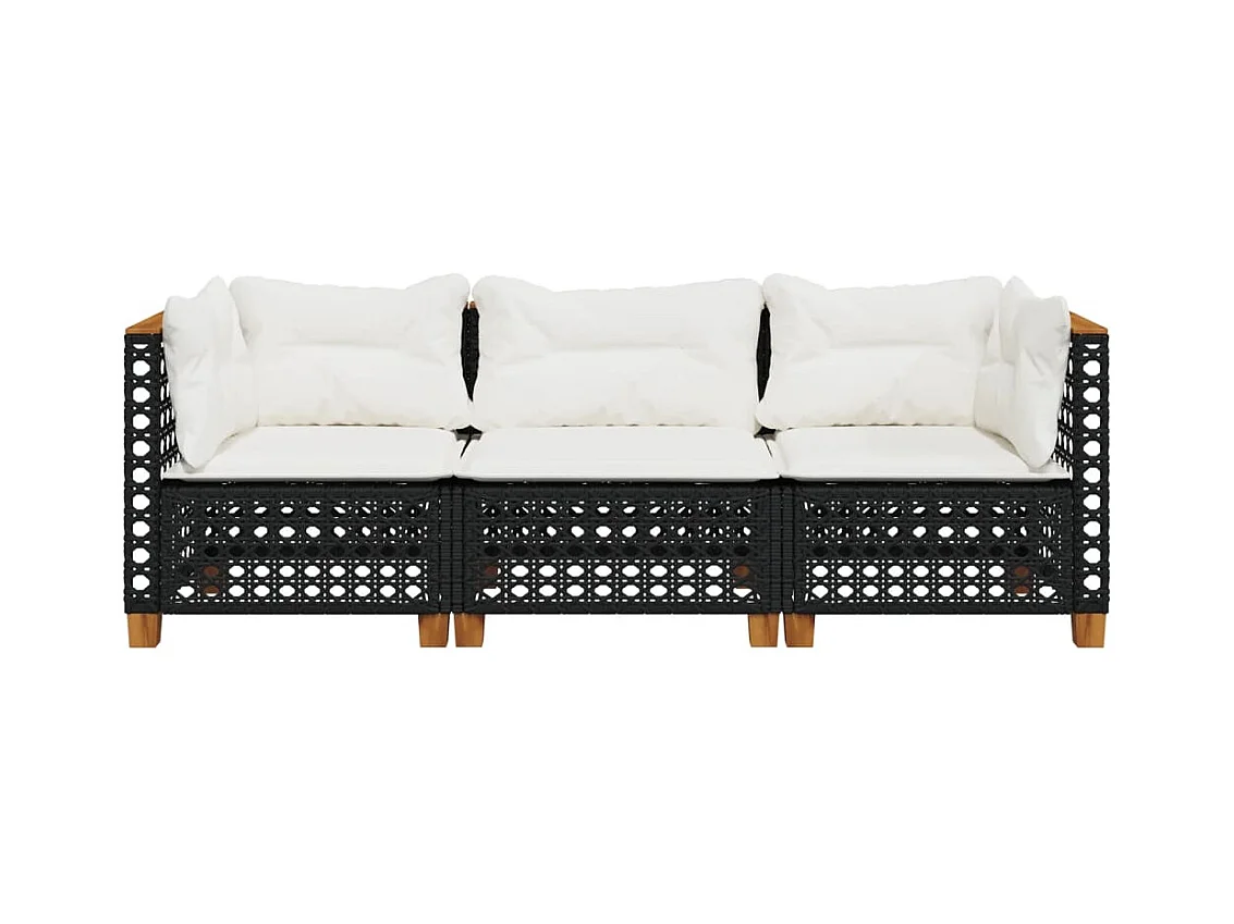 Sofá de jardín de 3 plazas con cojines ratán sintético negro