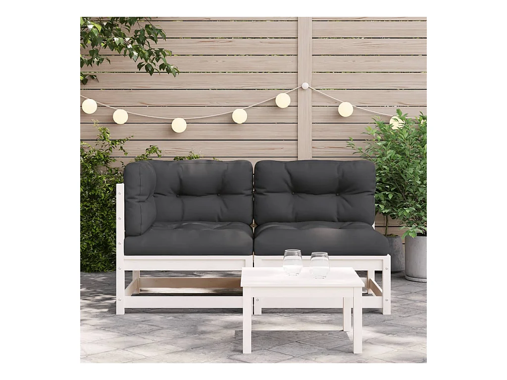 Sofá de jardín y cojines 2 plazas madera maciza de pino blanco