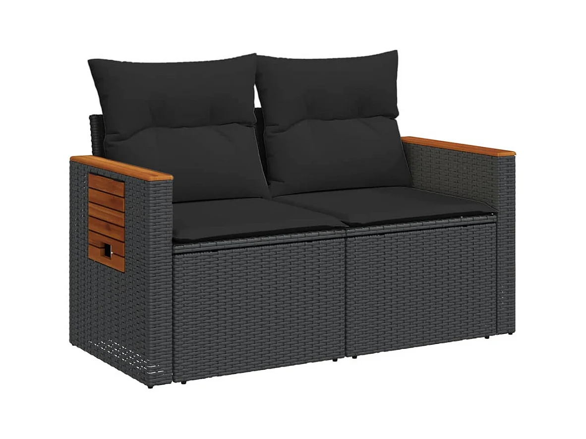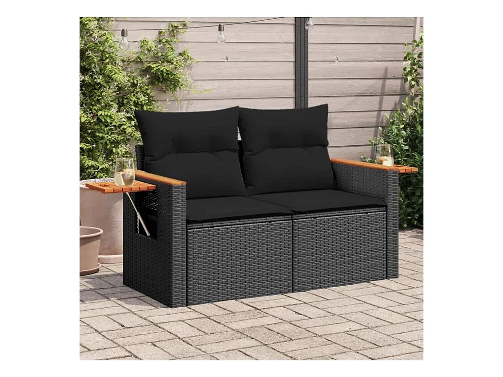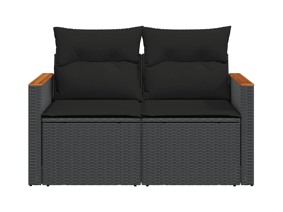 Sofá de jardín 2 plazas con cojines ratán sintético negro KOW26632
