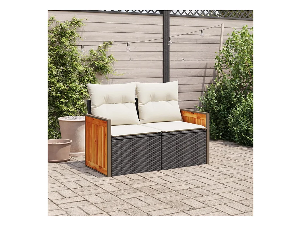Sofá de jardín 2 plazas con cojines ratán sintético negro KOW92422