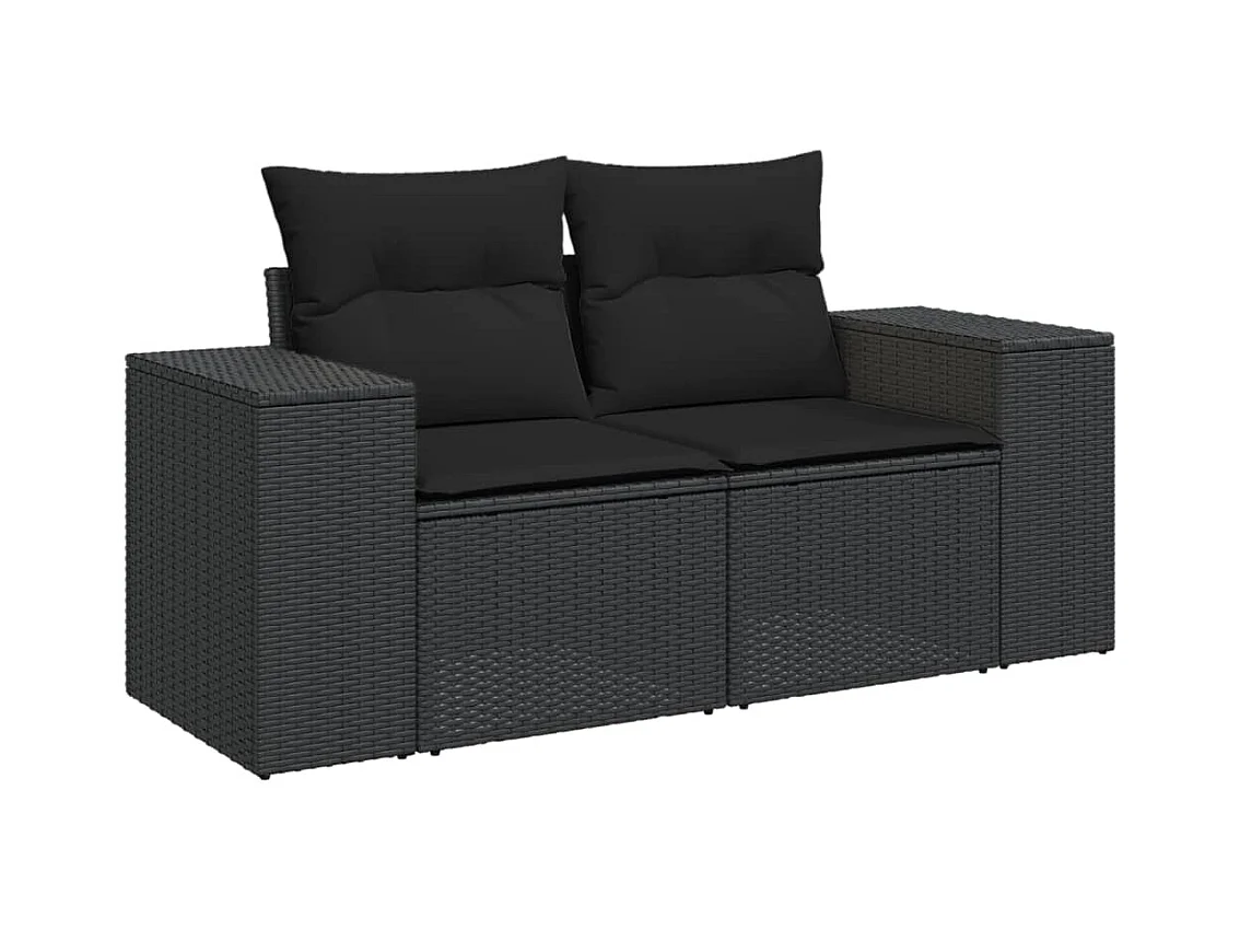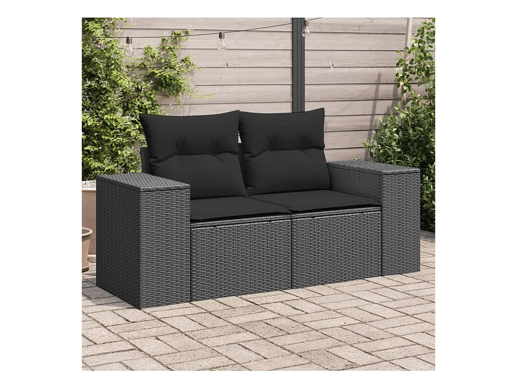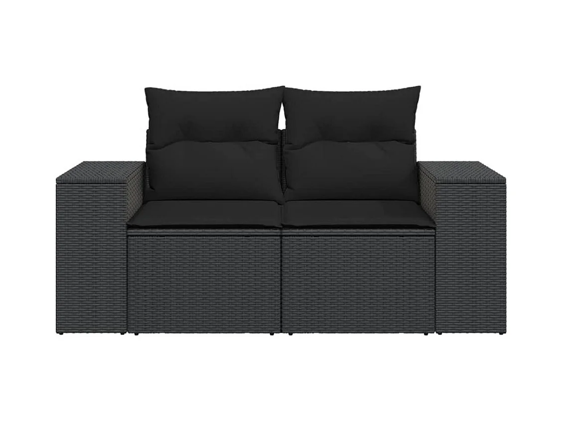 Sofá de jardín 2 plazas con cojines ratán sintético negro KOW58063