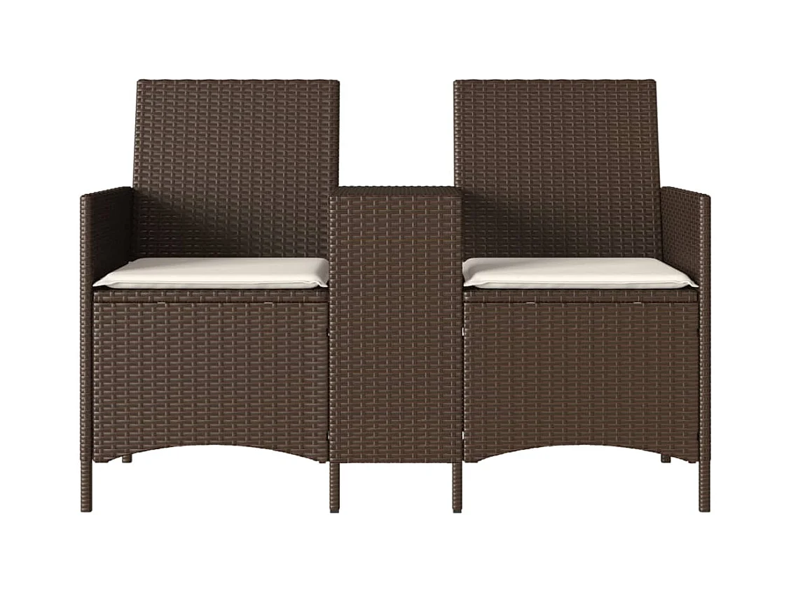 Sofá de jardín 2 plazas con mesa y cojines ratán PE marrón ES785509