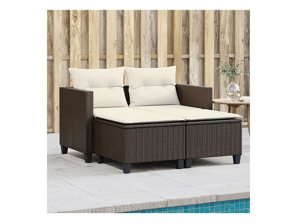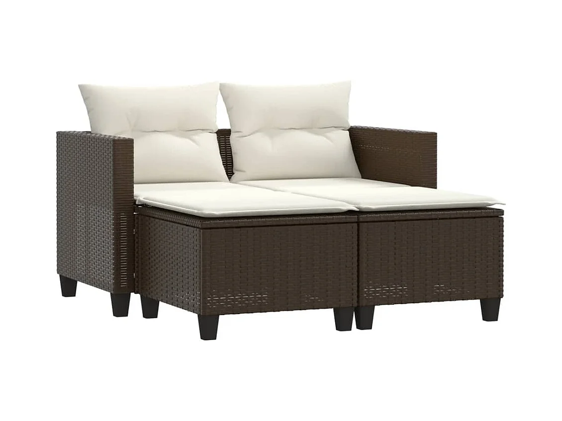 Sofá de jardín 2 plazas con taburetes ratán sintético marrón ES536207