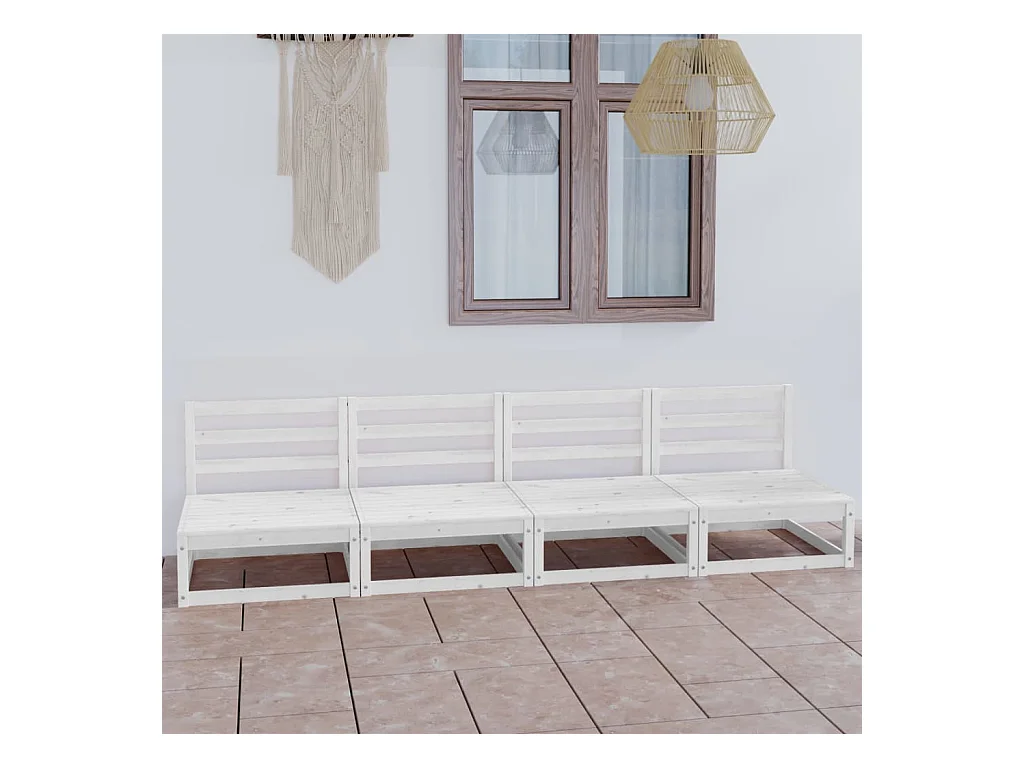 Sofá de jardín 4 plazas Blanco Madera maciza de pino