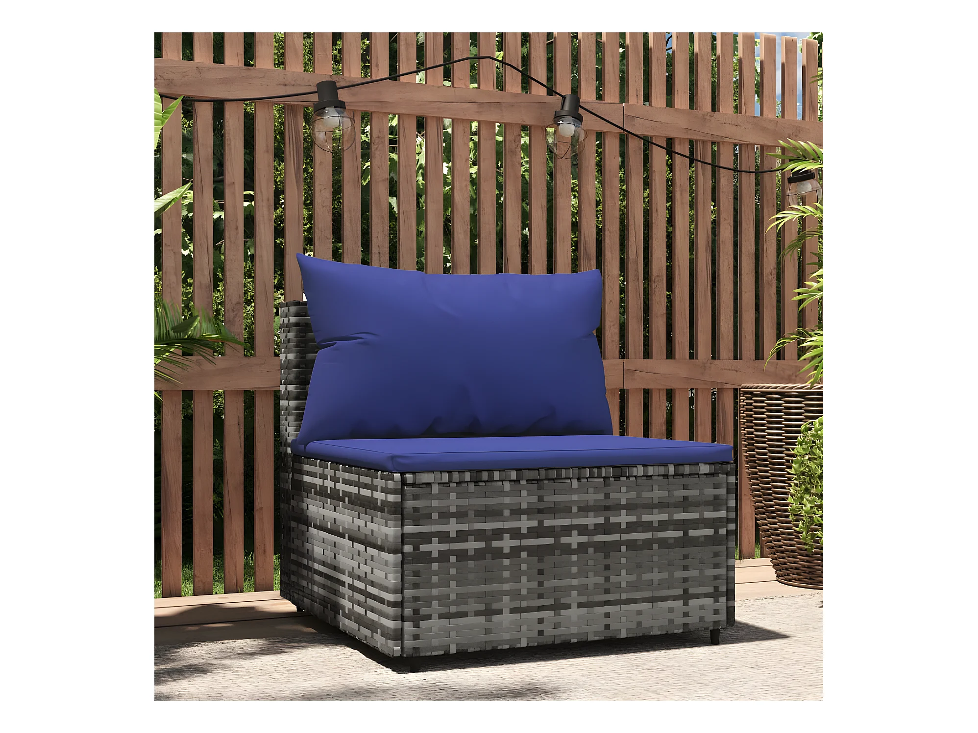 Sofá de jardín sin reposabrazos cojines de resina tejida gris