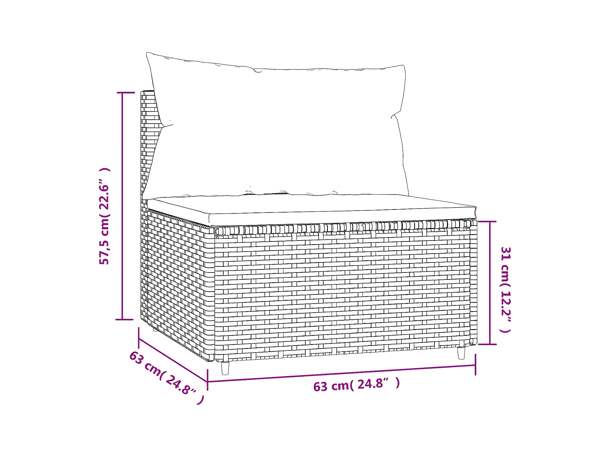 Sofás y cojines centrales de jardín 2uds Mimbre resina gris