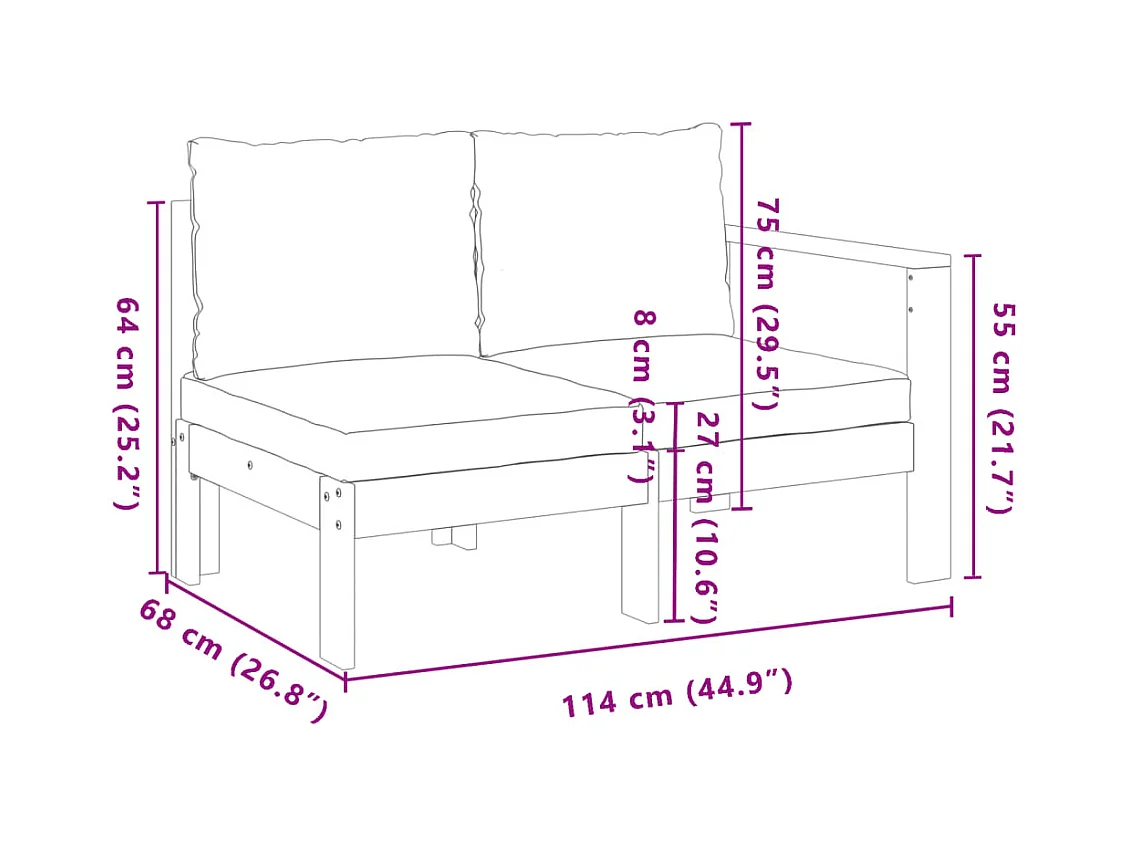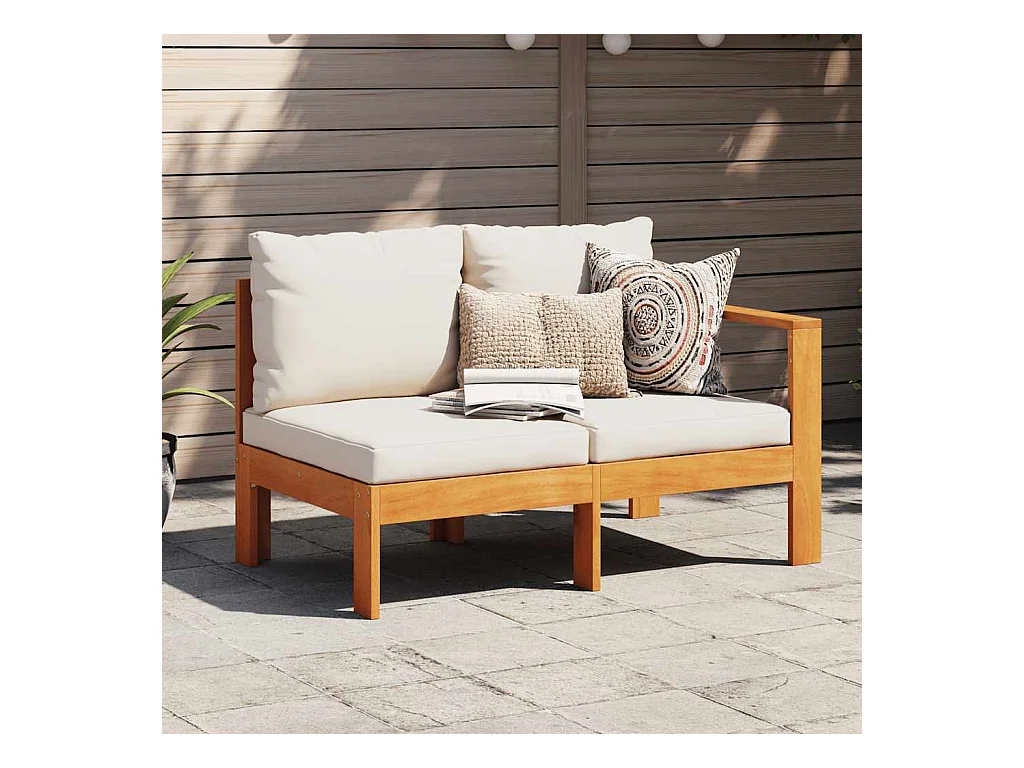 Sofá jardín sin reposabrazos con cojines 2 plazas madera acacia