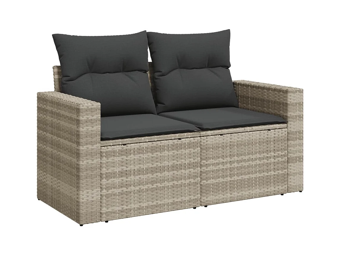 Sofá de jardín con cojines 2 plazas ratán sintético gris claro