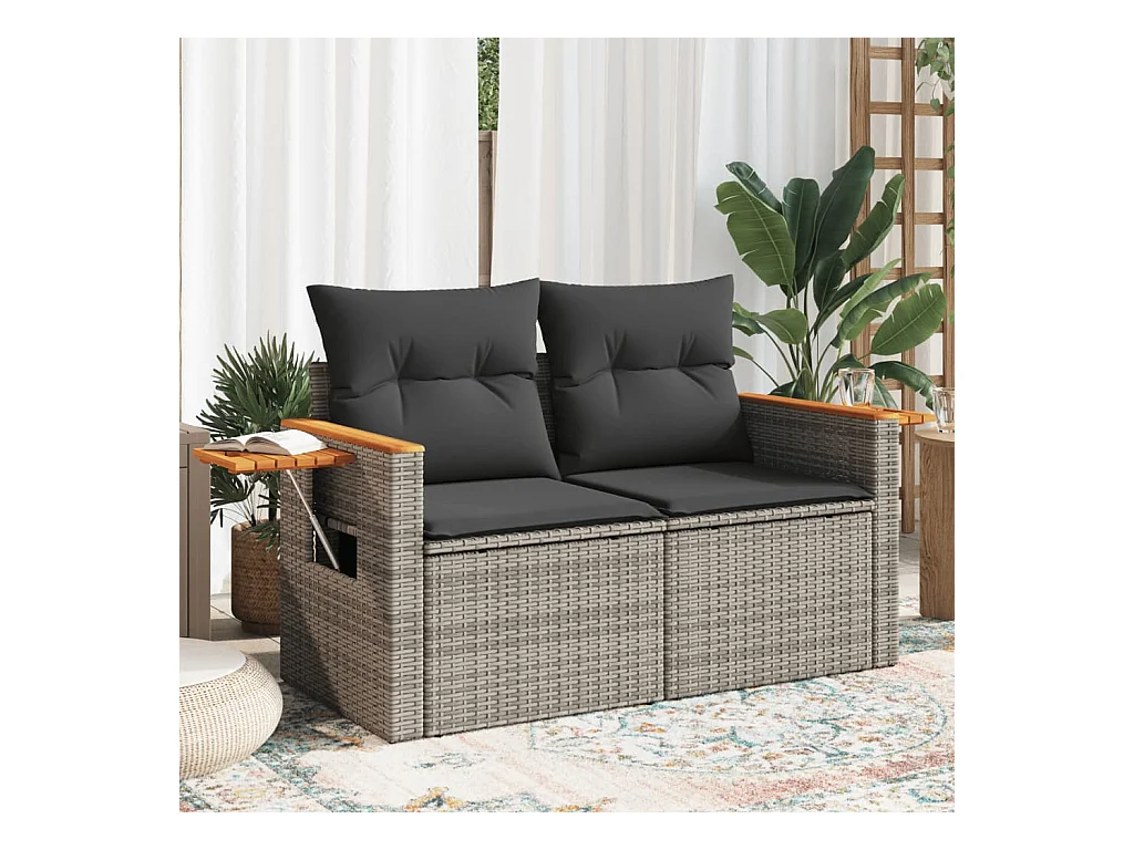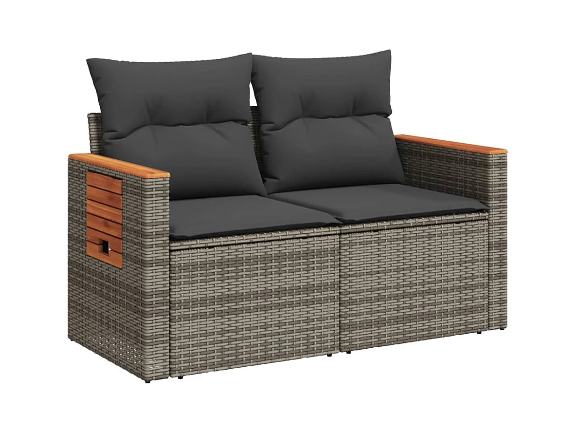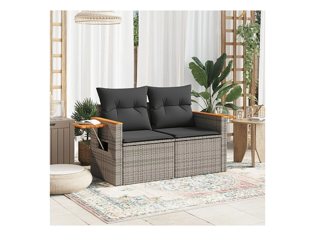 Sofá de jardín con cojines 2 plazas ratán sintético gris KOW89784